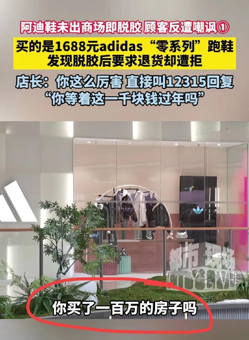 这个店长可给阿迪“长脸”了!新鞋出问题不认账也就算了,他还出口伤人。 店长怀疑鞋子是顾客用小刀割的,谁质疑谁举证,商场有监控可查,但他证明不了。 气人的是服务态度,商品卖出去都没离开商场就发现有问题了,至少应该有个解决事的态度吧。 这种明嘲暗讽的语气换谁也受不了啊! 销售员的工资来源是靠底薪加提成的,卖出去一件,他们有一件的提成,当然不愿意办理退换货。 大牌运动服饰价位本来就不低,再聘用这样的店长,销售额想冲上去可不容易!