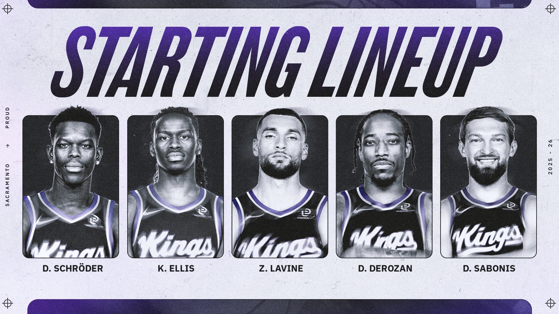 斯玛特顶替了受伤的东契奇进入首发,国王首发施罗德、埃利斯、拉文、德罗赞和萨博尼斯。