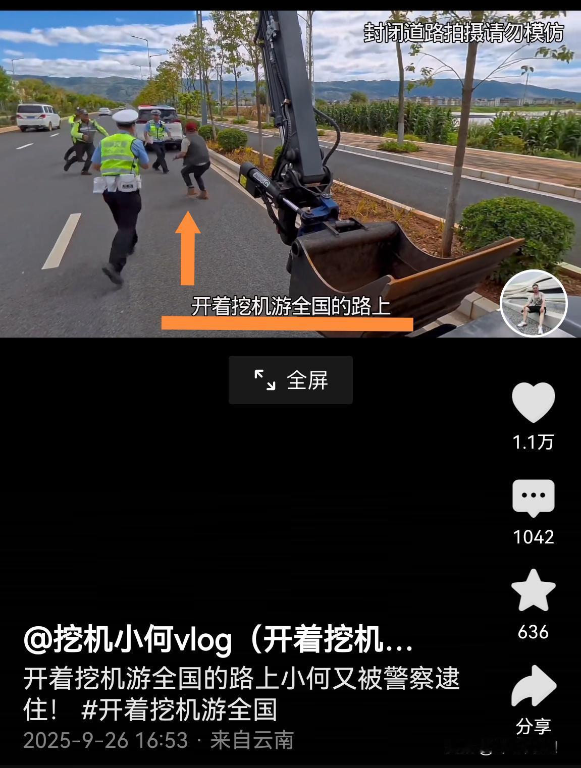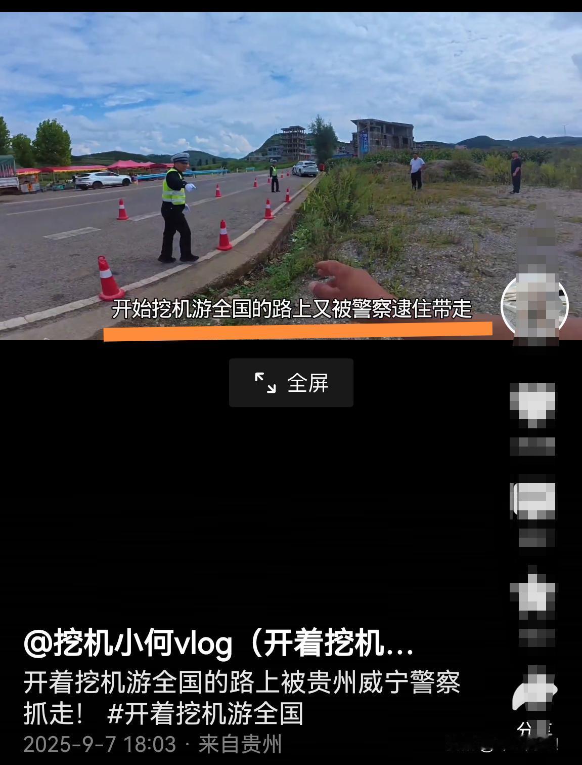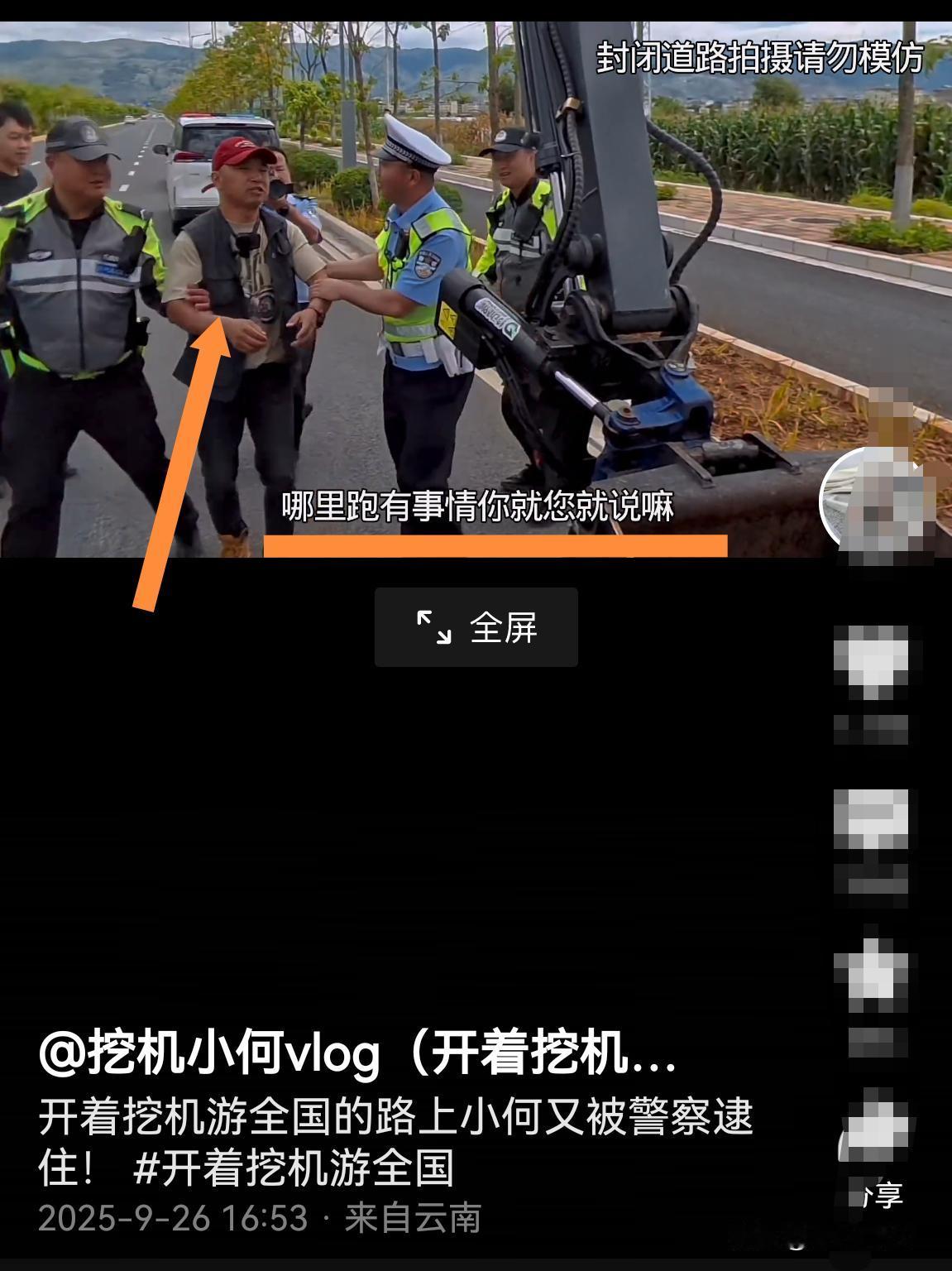 你知道吗?无罪又经常被抓的第一人,应该就是挖机小何! 有多少次被警察抓了,而且又是无罪被抓,没有确切的数据,但次数不少。大家都很忌讳被警察抓,挖机小何“无辜”被抓,也是警察看到他的善举,目的不是处罚他,是感谢他!同时,被“抓壮丁”向全国粉丝普及交通安全知识。 挖机小何,去年从宁夏银川出发,行程两万多公里,一路上义务帮填坑修路有7000多个,帮助清理泉眼,救助陷入泥潭的自驾游车辆,为学校修缮操场,帮瓜农挖管道,帮牧民挖厕所等等,还有贵州毕节、榕江发洪水,第一时间救援,帮助清理路障,开辟救援通道……确实,一路上做好事,不计其数,给挖机小何点赞![赞][赞][赞]