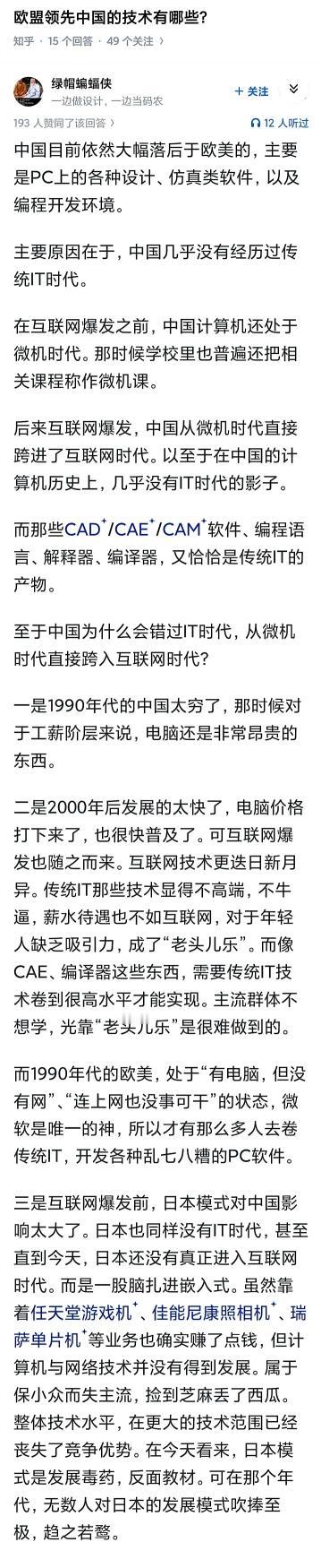 欧盟领先中国的技术有哪些? 这问题得从骨头缝里往外抠细节。先从天上飞的说起,