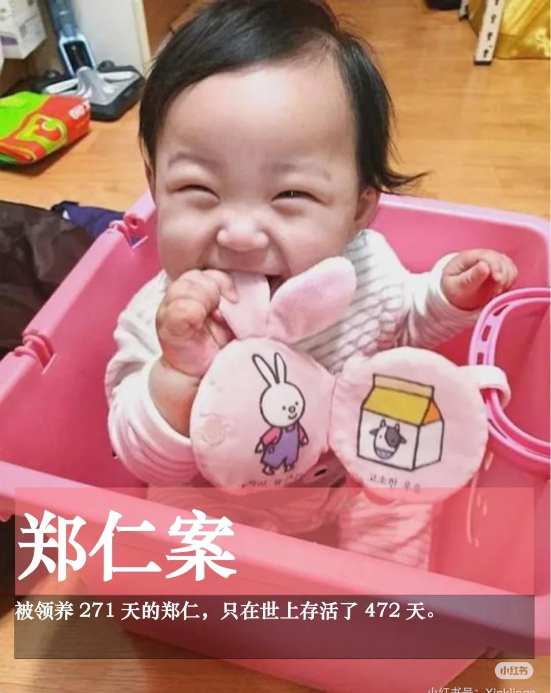 从领养人角度谈谈—郑仁案 养母出生在一个生活小康的家庭里,有父母的疼爱,也有自己的喜怒哀愁,接受了不错的教育,会英文,嫁了个门当户对的男人,虽不是大富大贵,但旗鼓相当,男方很是迁就!一切看起来刚刚好,但也正因为如此,她以为可以任性妄为、可以瞒天过海,一次次的伤害,警察一次次的失职,让她变得无所顾忌任由心中的恶魔肆无忌惮,终酿大祸,这一次她要用她的余生来偿还,家破人散,女儿寄人篱下,大抵也很难过好这一生!她会在铁窗里悔恨不已吗?会想起第一天见到郑仁时把她抱在怀里的柔情蜜意吗?不论怎样都无济于事了!200多天对于被领养的小郑仁来说是炼狱一般的日子,而她越来越癫狂终将自己毁灭!这一切都源于某个午后她突发奇想的领养念头开始!