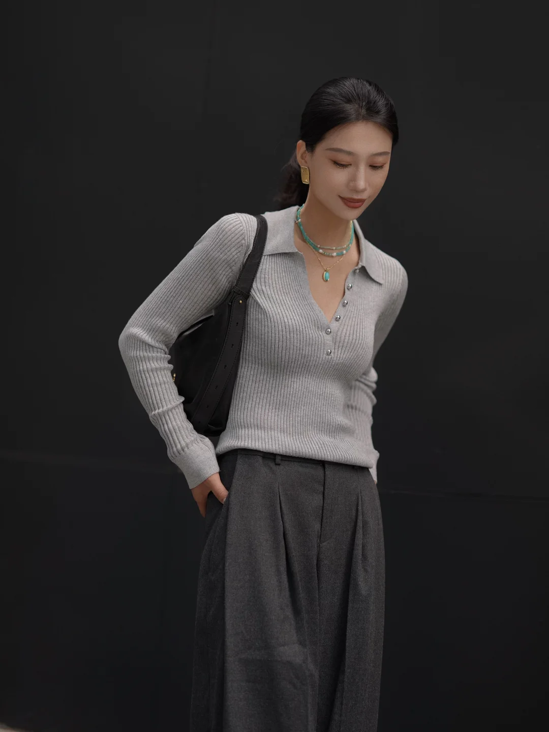 用一身灰色 调配秋冬的浓度