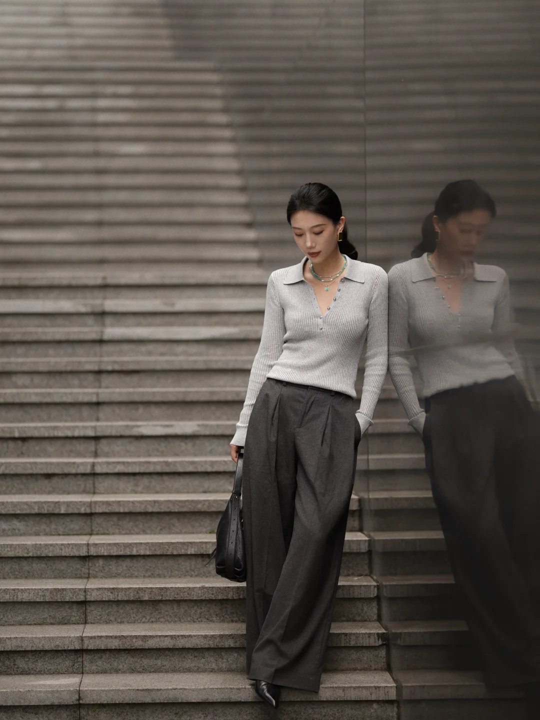 秋光渐染,我愿卸下斑斓,投身于一片深浅交织的灰。 那不是单调与沉寂,而是风过树梢的密语, 是云层流转的层次,是都市建筑凝成的现代诗篇。 深深浅浅,这一身灰,并非黯淡, 而是将色彩的话语权交还给肌体本身—— 让眼神更显沉静,让姿态更显从容。 它是一切喧嚣过后,回归自我的高级注解, 在这个秋天,静默成诗。
