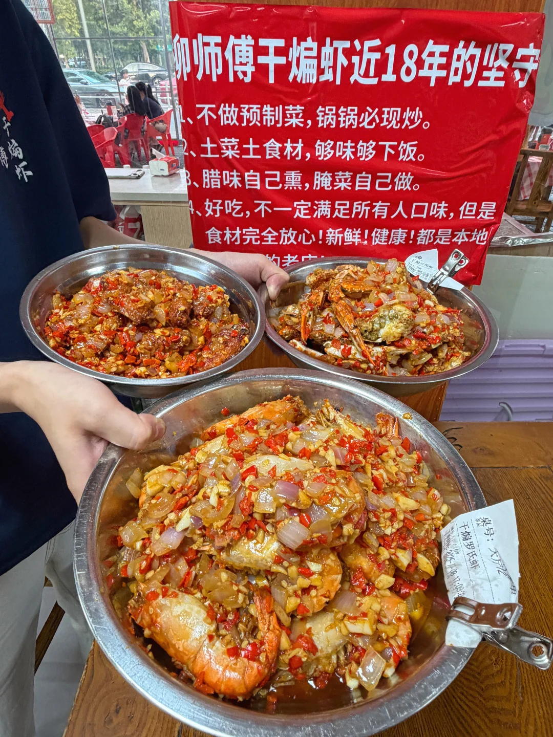 永远可以相信!!本地人推荐的!!! 私心不想让他太🔥的宝藏店!!! 没什么环境,但是口味太太太好吃了! 强推石锅鱼、羊排、干煸虾、干煸兰花蟹… 记住这个店名:柳师傅干煸虾。。。