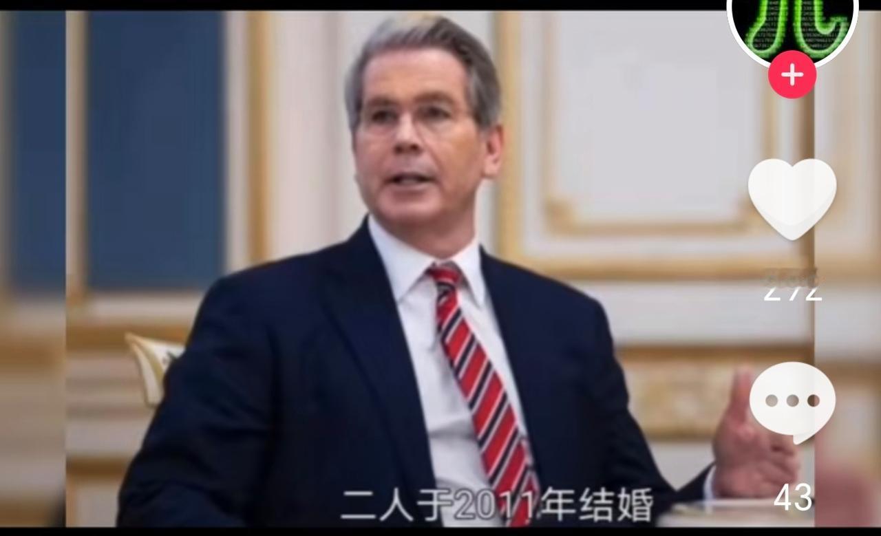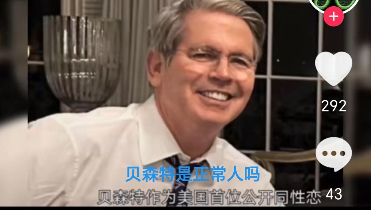 我们强烈要求美国更换谈判代表贝森特! 美国的同性恋者不但能公开恋情,而且能够当高官、委重任! 美国现任财政部长、中美贸易谈判代表贝森特就是活生生的例子。 贝森特扮演男同性恋中的妻子角色,他的丈夫曾是纽约市的检察官,名字叫弗里曼,贝森特和弗里曼共同养育了两个孩子。 作为一名同性恋者,其性格是不正常的。 美国派了一个性格不正常的同性恋者与我们谈判,终究谈不出什么好结果。 所以,我们强烈要求美国更换谈判代表贝森特!