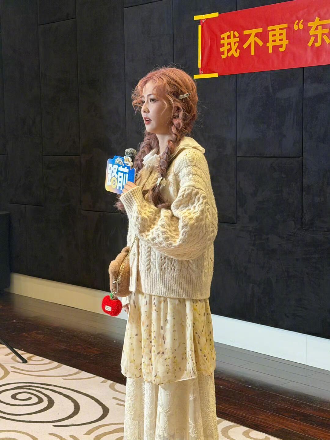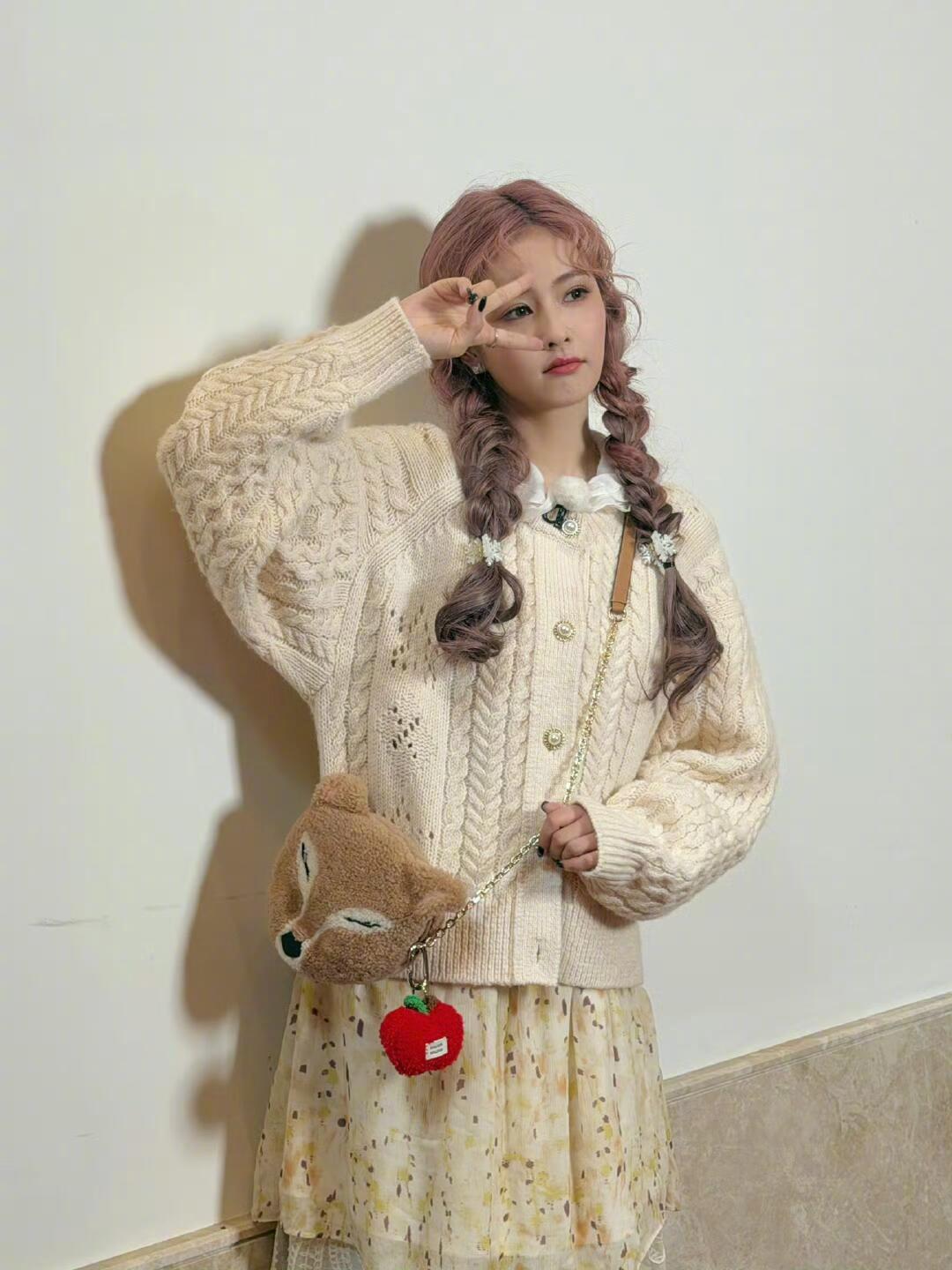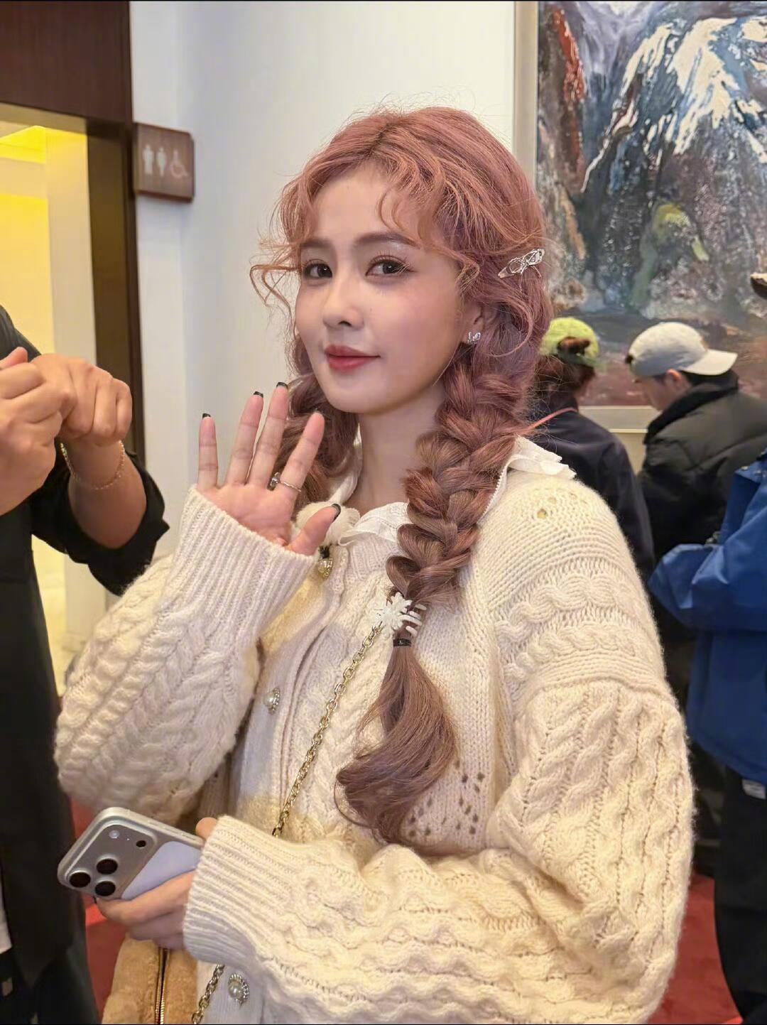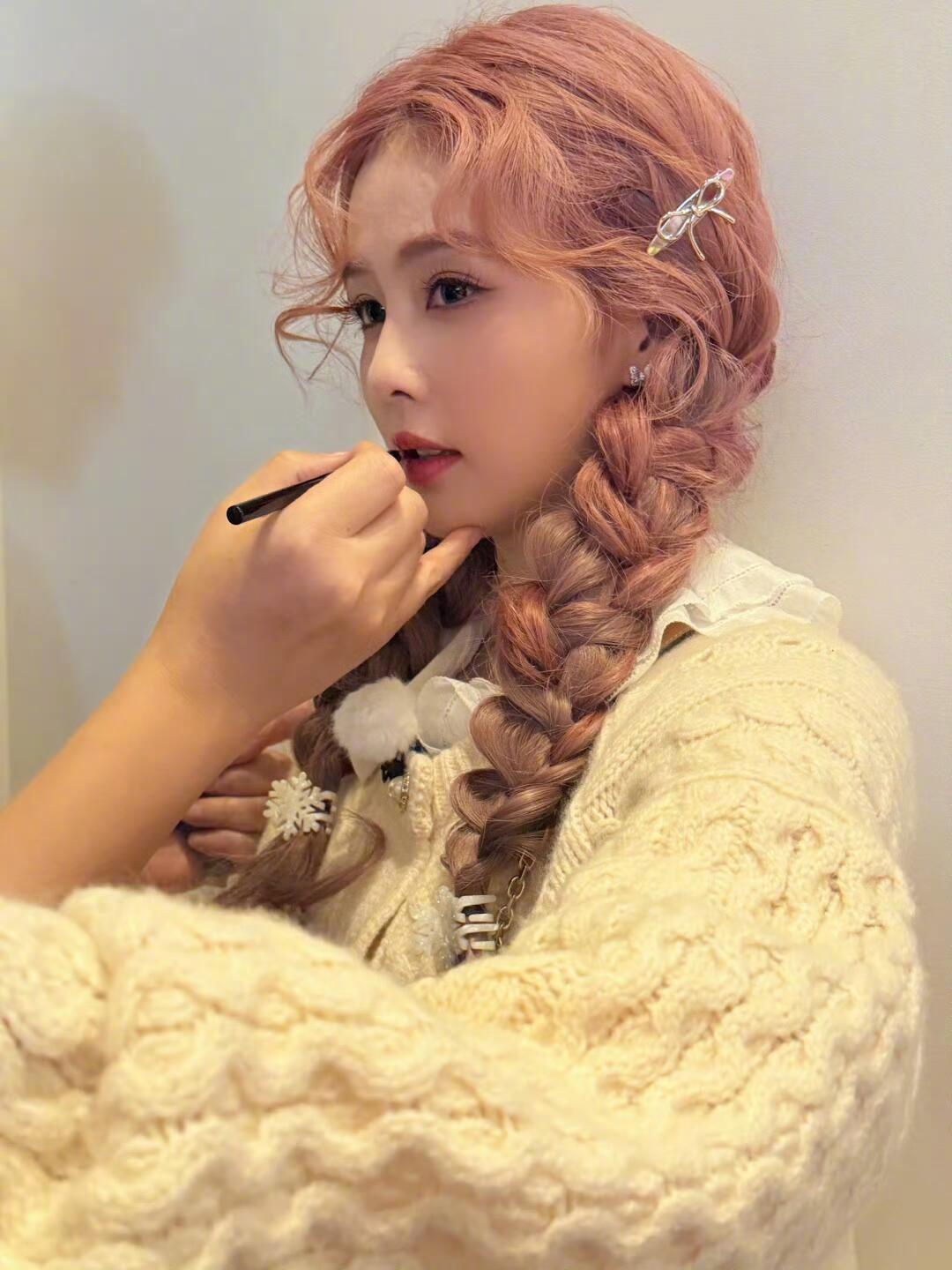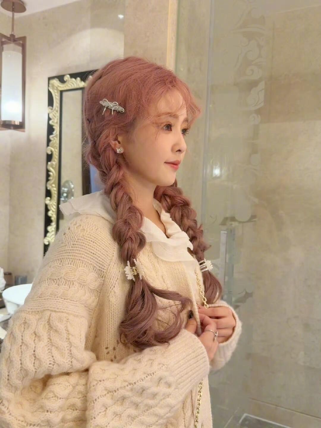 白鹿奔跑吧造型分享,粉色双麻花辫好元气🌸针织衫连衣裙的花样叠穿也很好看~