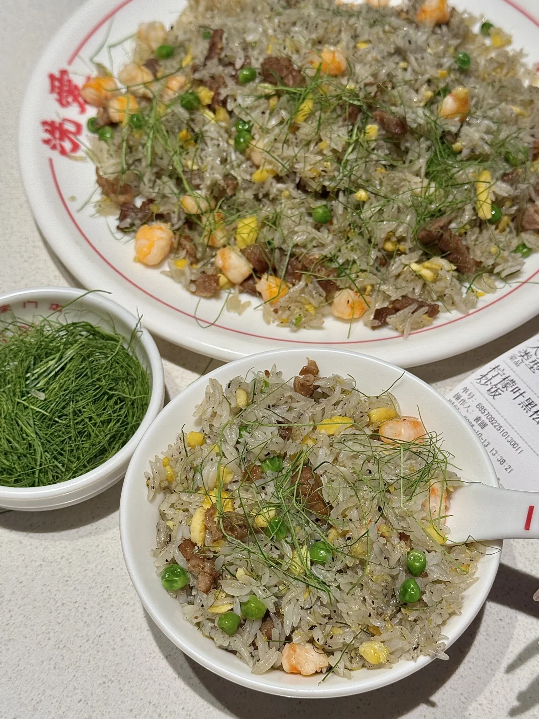 终于在杭州吃到了这一口!!干蒸荔枝虾滑,每口都bui汁😋 柠檬叶炒饭🤤柠檬叶的香气和黑松露相融好特别,好香~ 碱粽冰头次吃到!!碱粽Q弹软糯,口感糯叽叽的!