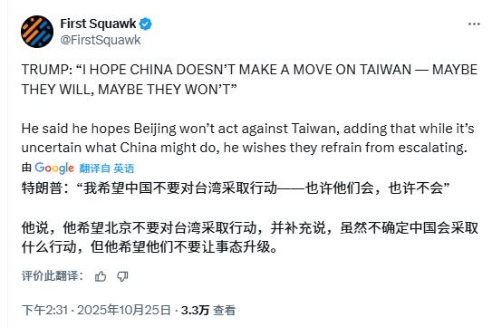 特朗普:“我希望中国不要在台湾问题上采取行动。也许他们会,也许他们不会,我希望他们不会。” 在德国拉姆施泰因空军基地面对记者的提问时,特朗普再次展现了他特有的表达风格。 当被问及是否考虑调整美国对台湾政策时,他巧妙地回避了直接回答:“我现在不想谈这个,不想制造任何复杂性。” 可以说,特朗普的台湾政策始终笼罩在“战略模糊”的面纱下,但与传统政治家不同,特朗普的模糊策略带有浓厚的交易色彩。 他将台湾视为一个小地方、小市场,甚至可以在商业谈判中用来交易。 特朗普在贸易、芯片产业与台湾问题之间建立联系,打破了传统外交政策的边界。 这种联系战略使得台湾问题更加复杂化,成为更大交易棋盘上的一个筹码。 对特朗普而言,台湾问题不仅是地缘政治问题,更是商业谈判的筹码。 他甚至公开表示,“台湾偷走了美国的芯片事业”,将安全保护与经济利益直接挂钩。 “台湾若需要美国保护,就应该支付‘保护费’。”特朗普这番直白的表述揭示了其外交政策的核心特征。 在这种思维下,美国对台军售呈现明显增长。 据统计,特朗普第一任期内对台军售总额高达183亿美元,远超拜登任期四年的约54亿美元,军售内容也发生显著变化。 特朗普政府出售的多是攻击型武器,包括“M1A2T艾布兰主力战车”、“海马斯”火箭和F16V战机等。 这些举动向台湾地区传递的信号十分明确:安全保护需要付费,而且价格不菲。 然而,这种保护并非无条件的承诺。 当被问到“未来若大陆对台湾出手,芯片冲击是否能降到最低”时,特朗普仅回答“美国会获得很大影响力”。 美国国防部副部长人选科尔比甚至公开主张,若大陆“进犯”台湾,应该摧毁台积电的芯片工厂。 台积电成为特朗普台湾政策中的关键棋子,今年7月,他一句“他们偷走了我们的芯片事业”就令台积电在台湾的股价应声下跌,市值一度缩水逾新台币1万亿元。 台积电随后宣布将增加千亿美元投资,在美新建3座晶圆厂,并设立研发中心。 业界担心,台积电一夕变成“美积电”。 随着台积电先进制程逐渐转移至美国,岛内关于“弃台论”的讨论再次兴起。 台湾国际战略学会执行长罗庆生分析认为,特朗普无意出兵保护台湾已是众所皆知。 有台积电在,美国多少要尽点心力;一旦先进制程都被搬到美国,台海有事,干美国何事?这种担忧在特朗普提及“统一”后进一步加剧。 当中美宣布大幅削减对彼此加征的高额关税后,特朗普表示贸易谈判成果将有利于“统一与和平”。 此言一出,立即触到民进党当局的敏感神经,也让岛内舆论看清现实:台湾不过是美国的一张牌。 “今天说支持、明天变不支持、后天又支持,反反复复的情况很多,完全是看中美之间的关系。” 台当局前“驻新西兰代表”介文汲一语道破玄机。