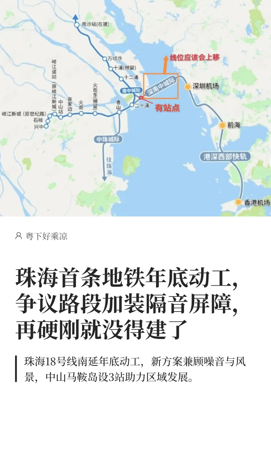 珠海首条地铁年底动工,争议路段加装隔音屏