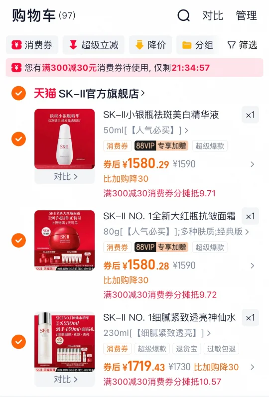 作为一位30+的长期熬夜党, 我的皮肤曾饱受暗沉、毛孔粗大和气色差的困扰。 直到我遇见了SK-II明星三件套, 肌肤终于迎来逆袭之路。 神仙水磨皮维稳,一夜“回春”。 短期看,神仙水是我的“急救神器”。 熬夜后湿敷,第二天皮肤依然透亮,看不出倦容。 长期用,它的维稳力更让我惊喜—— 毛孔更细腻,肤质从混油变中性,摸起来平滑多了。 三件套合力,气色“嘭”起来。 配合小灯泡和大红瓶,效果加乘。 小灯泡精准打击暗沉,让我肤色均匀透亮; 大红瓶则深层滋养,把松弛的脸蛋“兜”住, 恢复紧致澎润。一套流程下来, 那种由内而外的光泽感和透亮感 让我告别了曾经的暗沉憔悴的模样。 双十一惊喜offer,必须冲!这次双十一, SK-II的惊喜礼遇诚意满满, 正是入手明星套装的最佳时机。 投资这一套,就是投资熬夜后依然自信的自己!