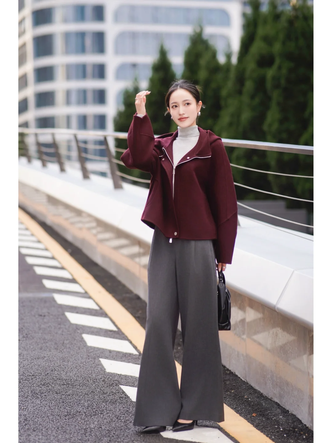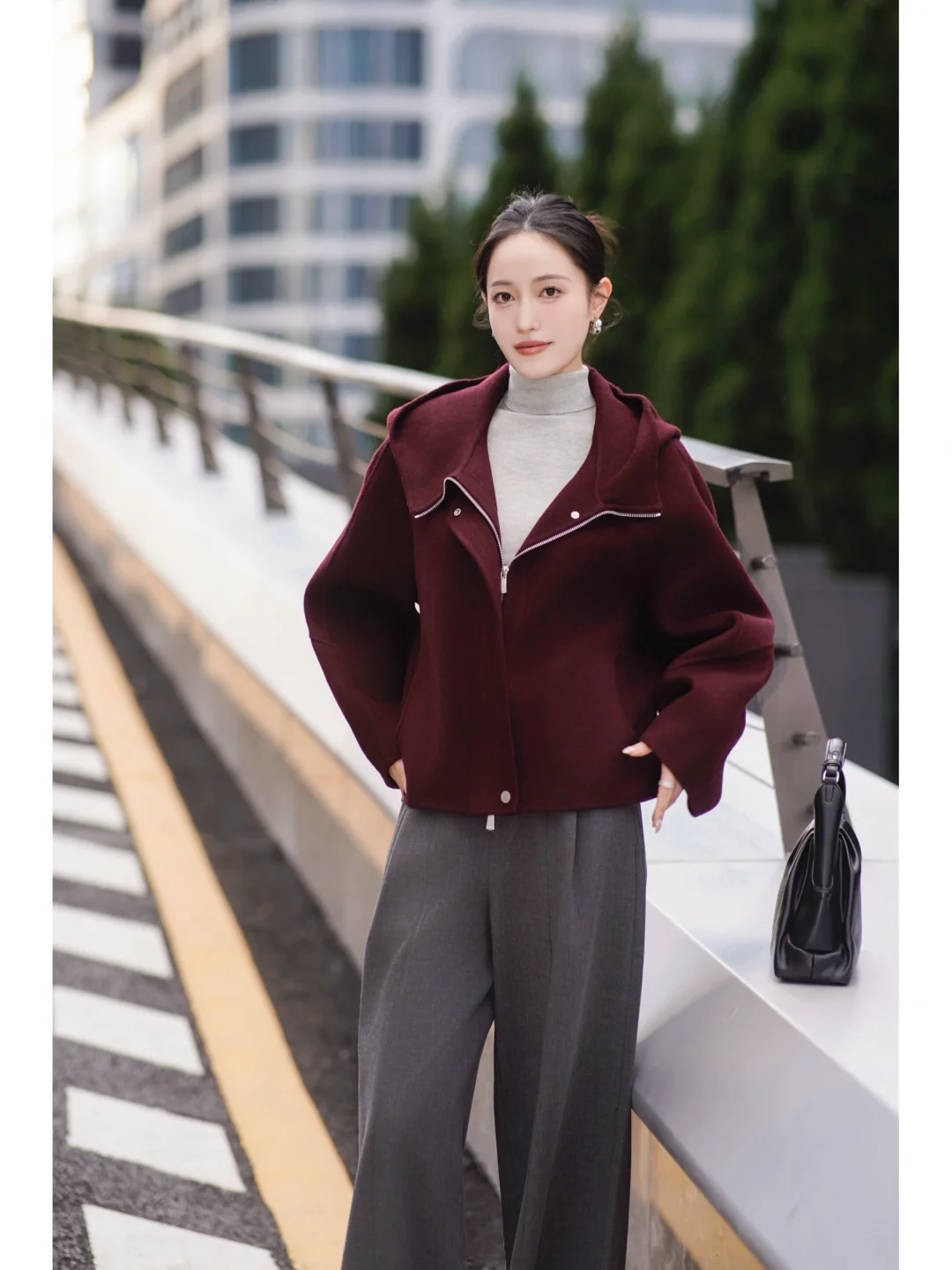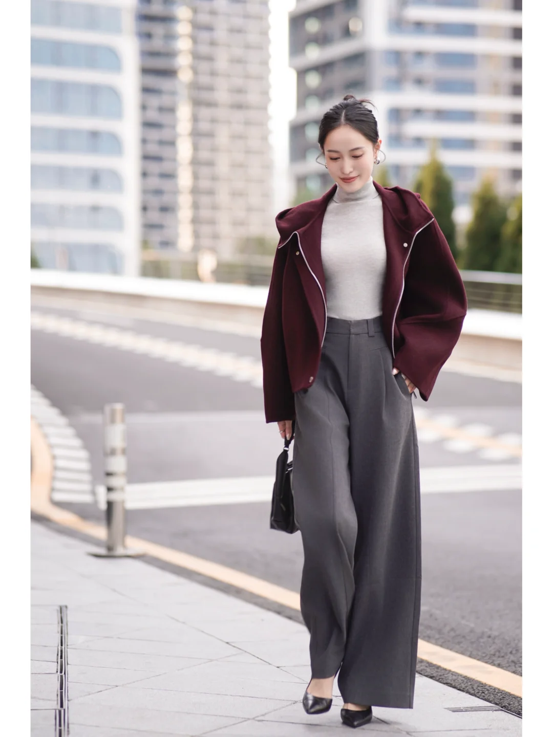 秋日高智感通勤💼安可拉红配灰色依旧能打!