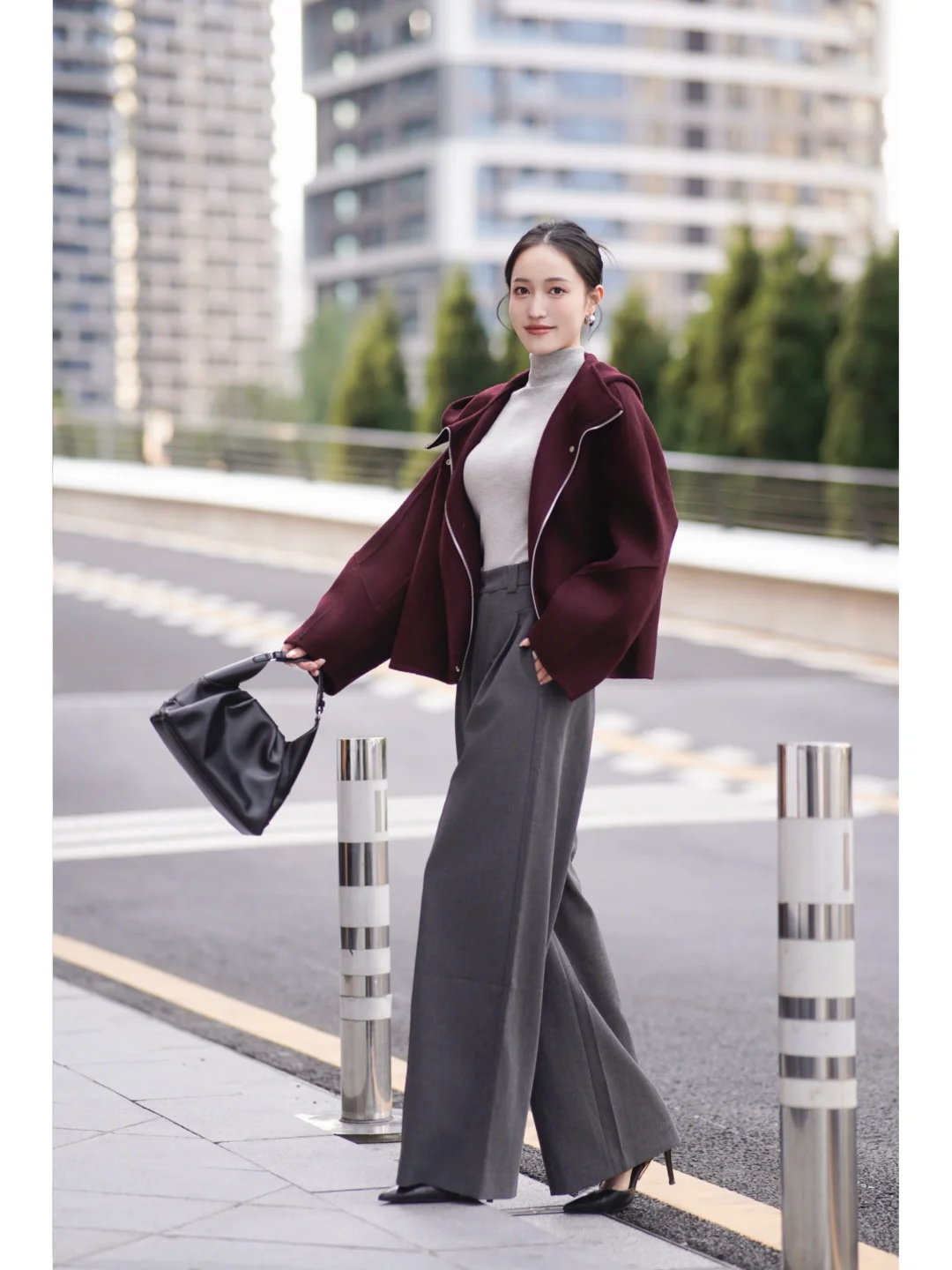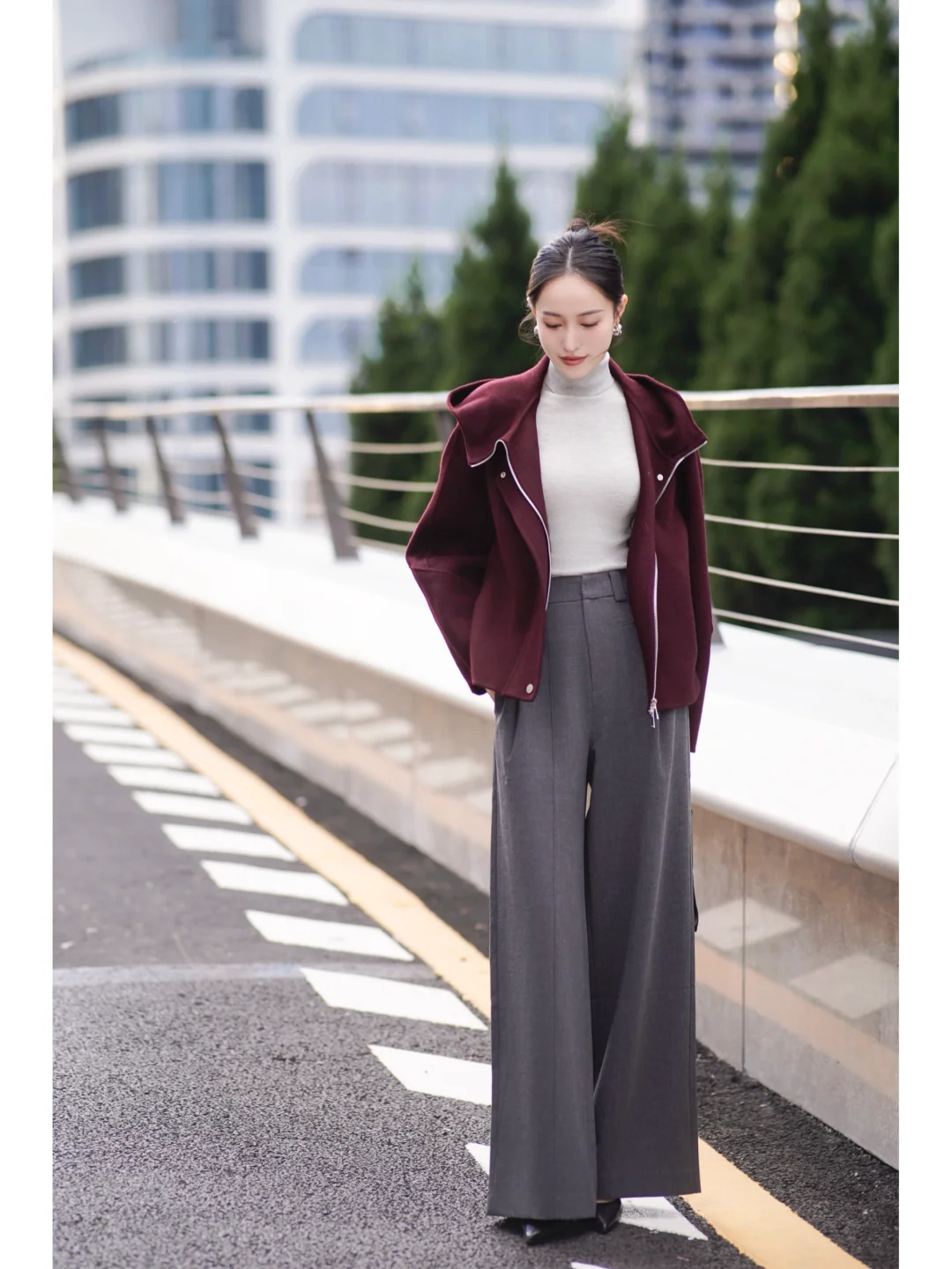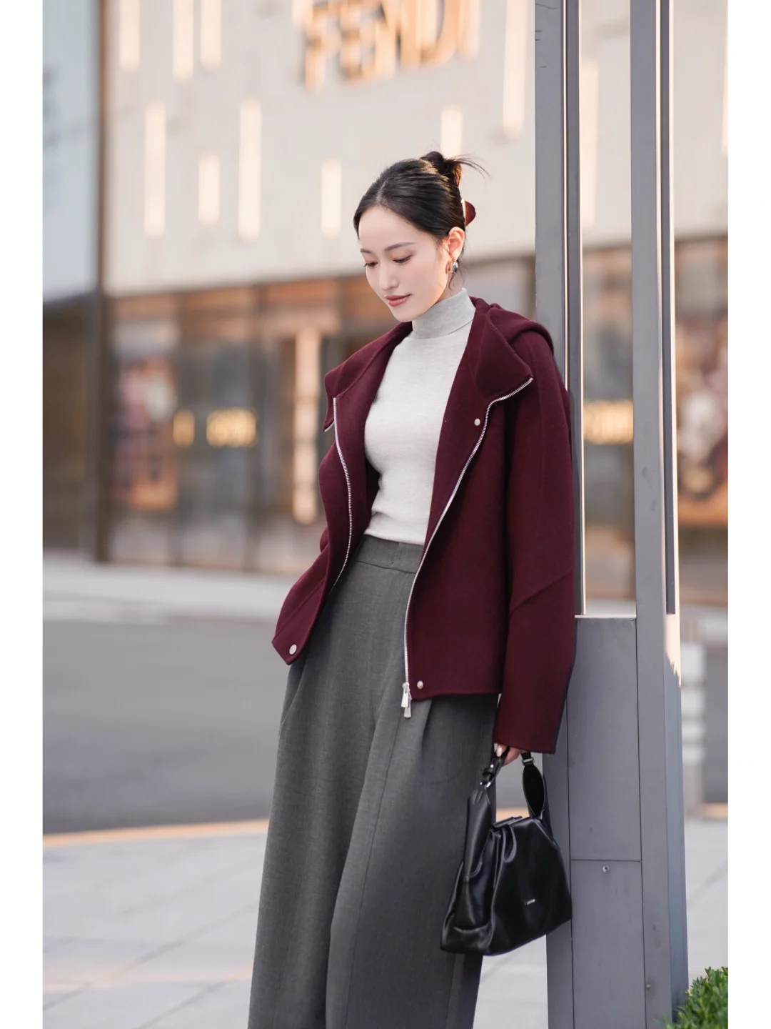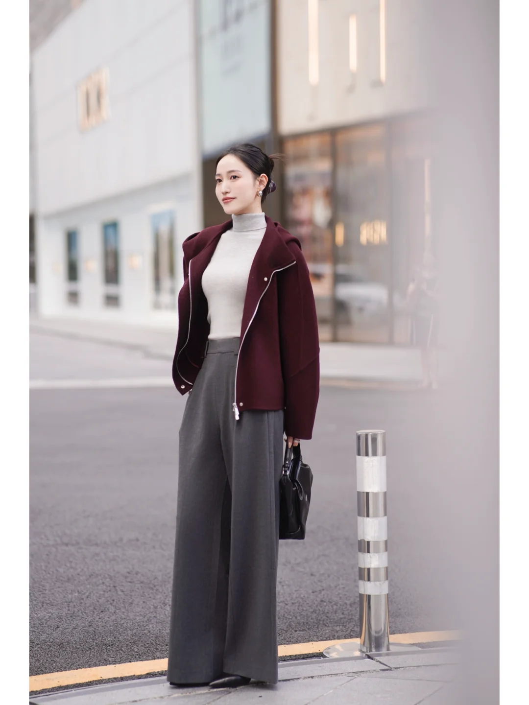 秋日高智感通勤💼安可拉红配灰色依旧能打!
