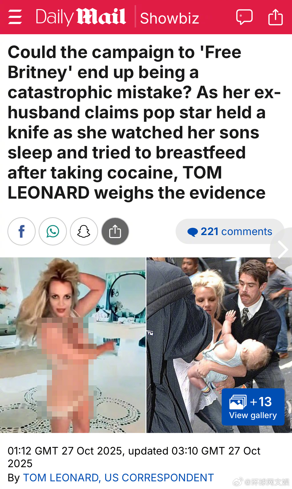 【外媒:#解救布兰妮会变成灾难性错误# ?】“解救布兰妮”的前前后后相信大家都已经很清楚了,但当地时间10月27日,有外媒抛出这样一个疑问:“解救布兰妮”会变成灾难性错误?#解救布兰妮#