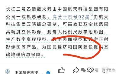·军事用途,终于大大方方地说出来了,一切敌人颤抖吧。 在2025年10月26日,我国长征三号乙运载火箭成功发射高分十四号02星。该卫星由航天科技集团五院研制。 这次发射的消息看起来与以往并无太大不同,火箭顺利点火、卫星按计划入轨,一切井然有序。但真正让人关注的,不只是技术层面的成功,而是那句写在官方通报里的新表述——“为国民经济和国防建设提供基础地理信息保障”。 这四个字的出现,打破了长期以来航天通报中一贯的“克制”。 高分十四号02星是一颗高清立体测绘卫星,能获取全球范围的高精度三维影像,它能为制图、测绘、资源调查、防灾减灾等提供关键数据,是经济建设的重要基础。 从功能上看,它与以往的高分系列卫星一脉相承,但这次官方没有仅仅强调农业、通信、气象这些常规用途,而是罕见地将“国防建设”摆在了台面上。 过去几十年,每当航天发射成功,官方措辞总十分谨慎,习惯将重点放在民用价值,讳谈军事用途,哪怕外界清楚某些卫星具备国防潜力,官方报道也从不点破。 而如今,这层面纱被主动揭开,这种转变不是随口而出的表态,而是一种经过权衡的信号:当技术实力和国家自信达到一定层级,就无需再遮遮掩掩。 “国防建设”这四个字的公开出现,意味着中国对自身航天能力的定位更明确了,它不仅是经济发展的工具,也承担起保障安全、服务战略的任务,从技术支撑到安全防线,这种表态让世界看见另一层意义上的中国航天,既能守护发展,也能保卫国土。 高分十四号02星的升空,不只是一次航天任务的圆满,更像一次态度的亮相,从低调到坦然,这背后是实力使然。