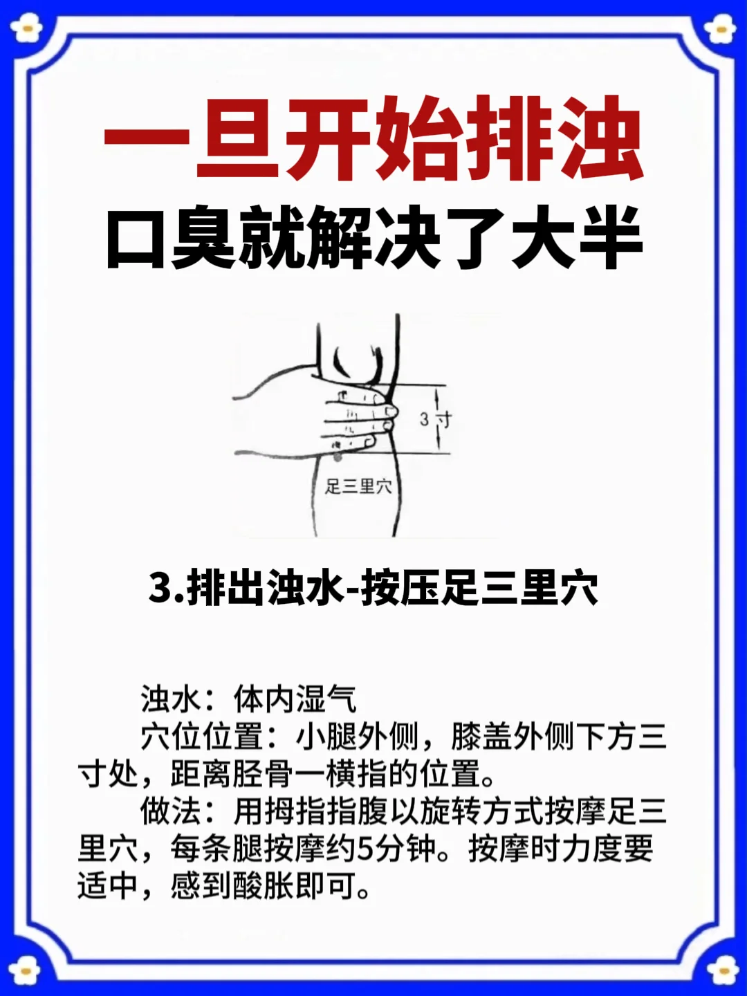 做法:用拇指指腹以旋转方式按摩足三里穴,每条腿按摩约5分钟。按摩时力度要适中,感到酸胀即可。