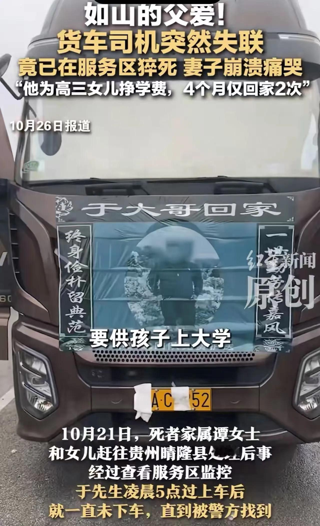 泪流满面!黑龙江一位45岁的货车司机,在高速服务区突然猝死,震惊了无数人。这个平凡的男人,或许就像我们身边的每一个普通父亲、丈夫、儿子,用坚韧的双手撑起一家人的生活,却在生命的最后一刻,留下一片无尽的哀思和沉重的反思。 他的妻子在接受采访时哽咽着说:“他跑车4个月,只回过家2次。女儿即将考大学,家里的一切都寄托在他的肩上。没想到,他就这样走了。”听着这些话,谁能不心碎?一个家庭的希望、一个父亲的责任,竟然在一瞬间变成了永远的遗憾。 这个故事,似乎只是众多货车司机中的一个缩影。我们常说,货车司机是城市的血脉,是物流的脊梁,但同时,他们也是最容易被忽视的群体。长时间的奔波、孤独的夜晚、身体的疲惫,甚至生命的脆弱,都在无声中累积。 然而,令人愤怒又心疼的是:在现代科技飞速发展的今天,为什么还没有一套更安全、更人性化的驾驶方式?为什么那些每天在高速公路上奔波的司机,不能像未来的科幻电影里那样,享受无人驾驶带来的便利和安全?如果货车可以实现无人驾驶,是否就能让像他这样的司机多一些休息的时间,少一些危险的风险? 网友们的评论也充满了愤怒与期待:“大货车最应该实现无人驾驶,让司机轻松一点!”这句话,像是一声怒吼,也像是一份期待。我们都知道,科技的进步本应为人类服务,为什么偏偏要让这些在一线的司机,用生命在高速上拼搏?他们值得更好的保护,更智能的交通体系。 这场悲剧,折射出的是一个深层次的问题:现代社会的快节奏、商业利益的追逐,是否让我们忽略了那些最基础的人性关怀?一辆货车,一份责任,一家人的希望,都值得被更好地呵护。 我们不能让悲剧再次重演。也许,未来的某一天,自动驾驶的货车会成为常态,让司机们可以安心地回家、陪伴家人。而在此之前,我们更应该呼吁:科技创新,不应只为效率,更应为生命的安全和幸福。 每一次的悲剧,都是对我们社会的警醒。让我们共同期待,科技的力量能让货车司机的生命不再如此脆弱。让那些像他一样默默奉献的英雄们,能在未来的道路上,平安归来,笑着迎接每一个晨曦。 这是一个关于责任、关于关怀、关于未来的故事。希望每一个读到这里的人,都能深思:我们能为那些在高速公路上奔波的“英雄”做些什么?或许,改变就在不远的将来,而我们每个人,都可以是那股推动变革的力量。货车司机之死
