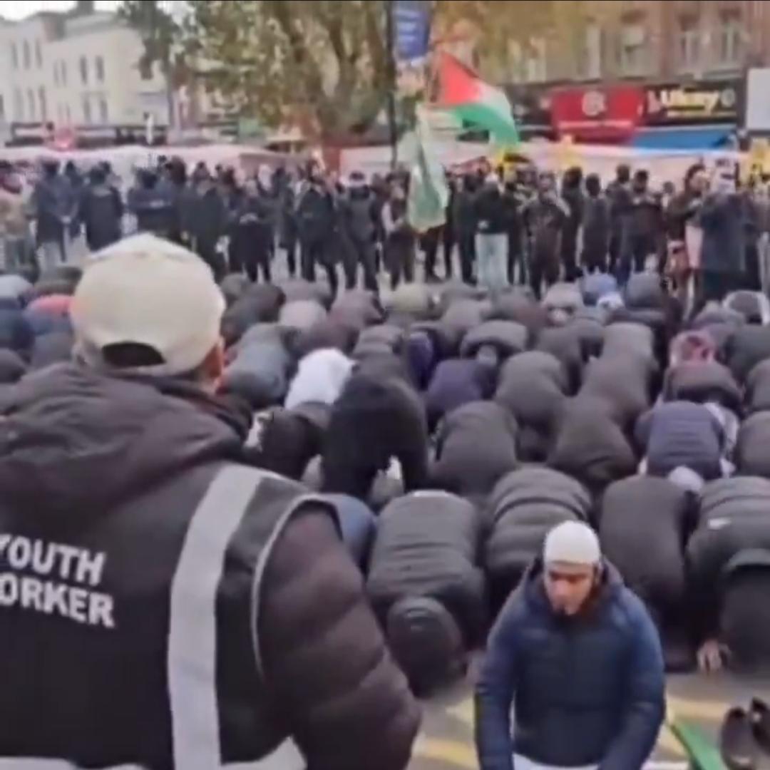 英国警察中穆斯林警察越来越多,这些警察在街头值勤时,到点了,就在路边做礼拜。
