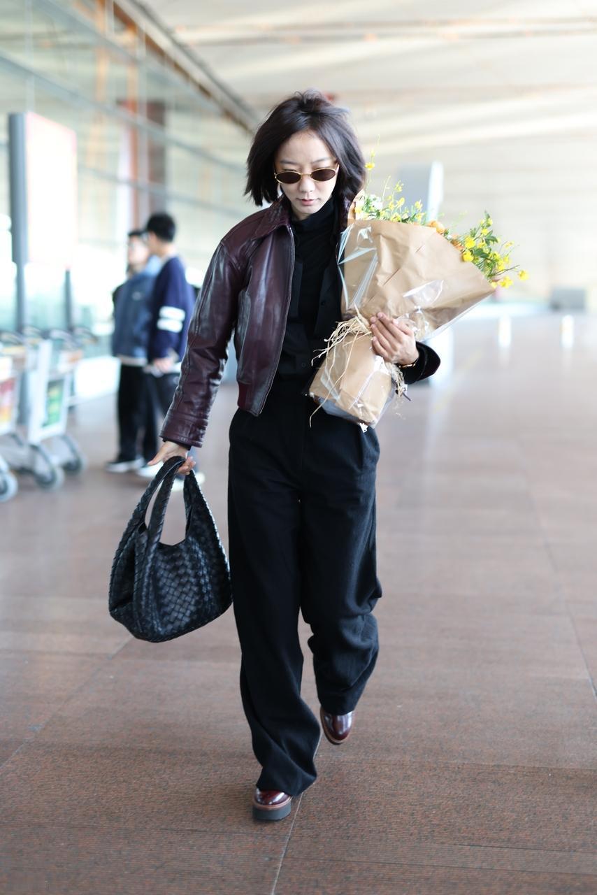 今天王珞丹现身北京机场,她这次搭配的很有气质,也显得好年轻。 王珞丹里面穿黑色打底衫,外面套装咖啡色短款皮衣,两件衣服得穿的效果很不错。 她下身穿黑色裤子,尽显潇洒时尚魅力,确实是特别的漂亮。 王珞丹这次彰显出了很好的身材比例,也显得格外苗条,真的好美。 她脚踩咖啡色皮鞋,留着清新的短发,还戴着黑色墨镜,有种酷酷的感觉。 手捧鲜花的王珞丹也显得好浪漫,还有种文艺气息。