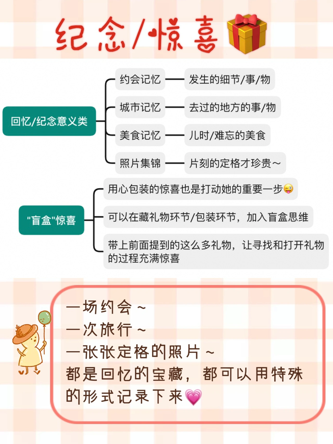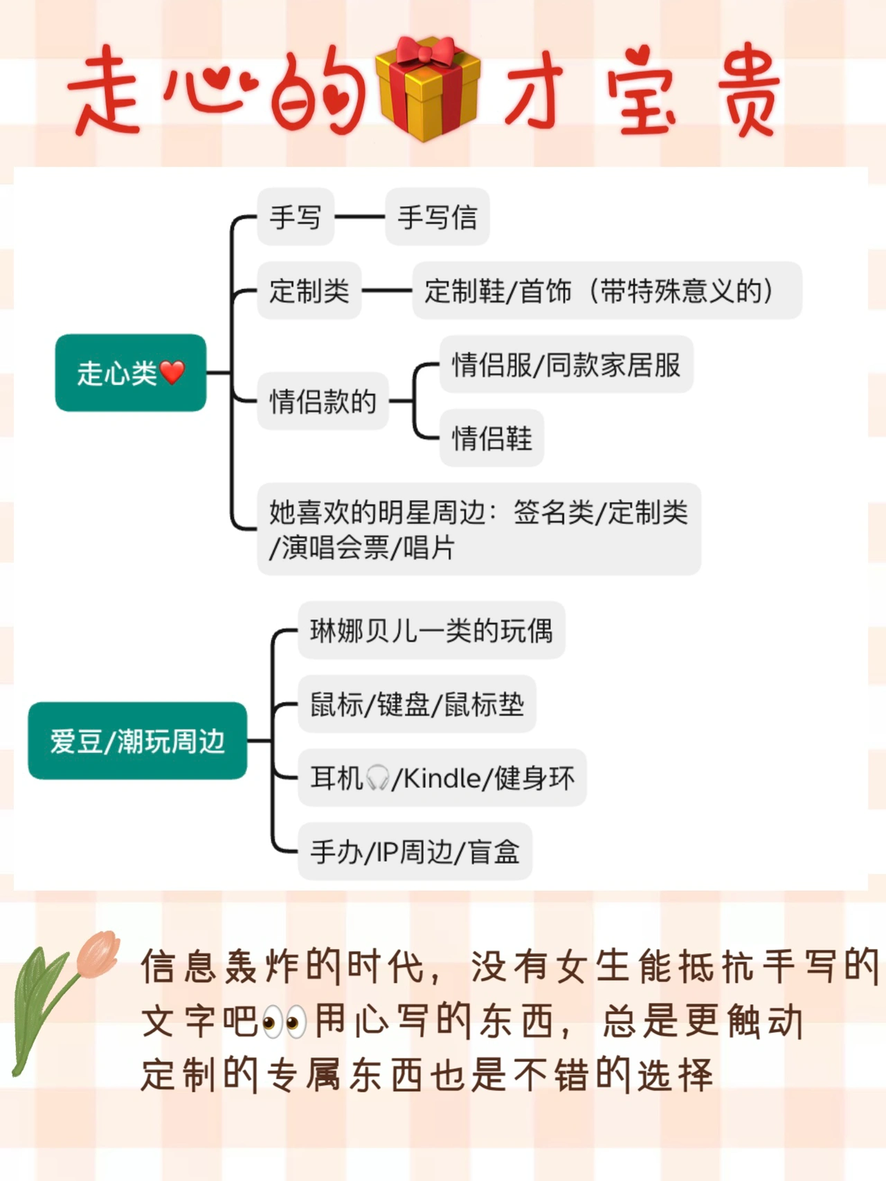 男生和女生care的点不同,男生可能实用为主,女生更喜欢的是走心❤️的、精心准备的惊喜、藏着满满诚意的🎁