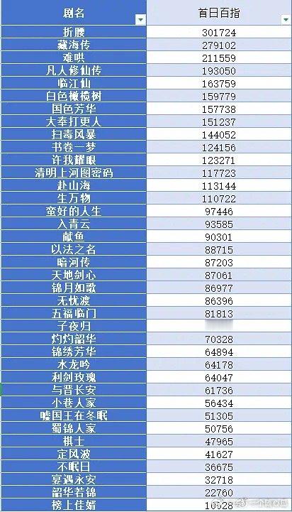 腾讯大会剧集百指,吴磊剑来大断层,唯一上两万且是唯一破万的