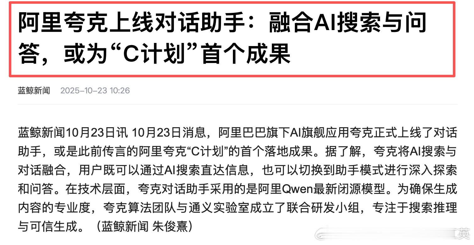 这次夸克上线的对话助手,还真就不是聊天机器人那么简单,而是把“搜索能力”和“对话体验”结合在一起。而在这背后做出技术支持的,正是Qwen最新闭源模型!