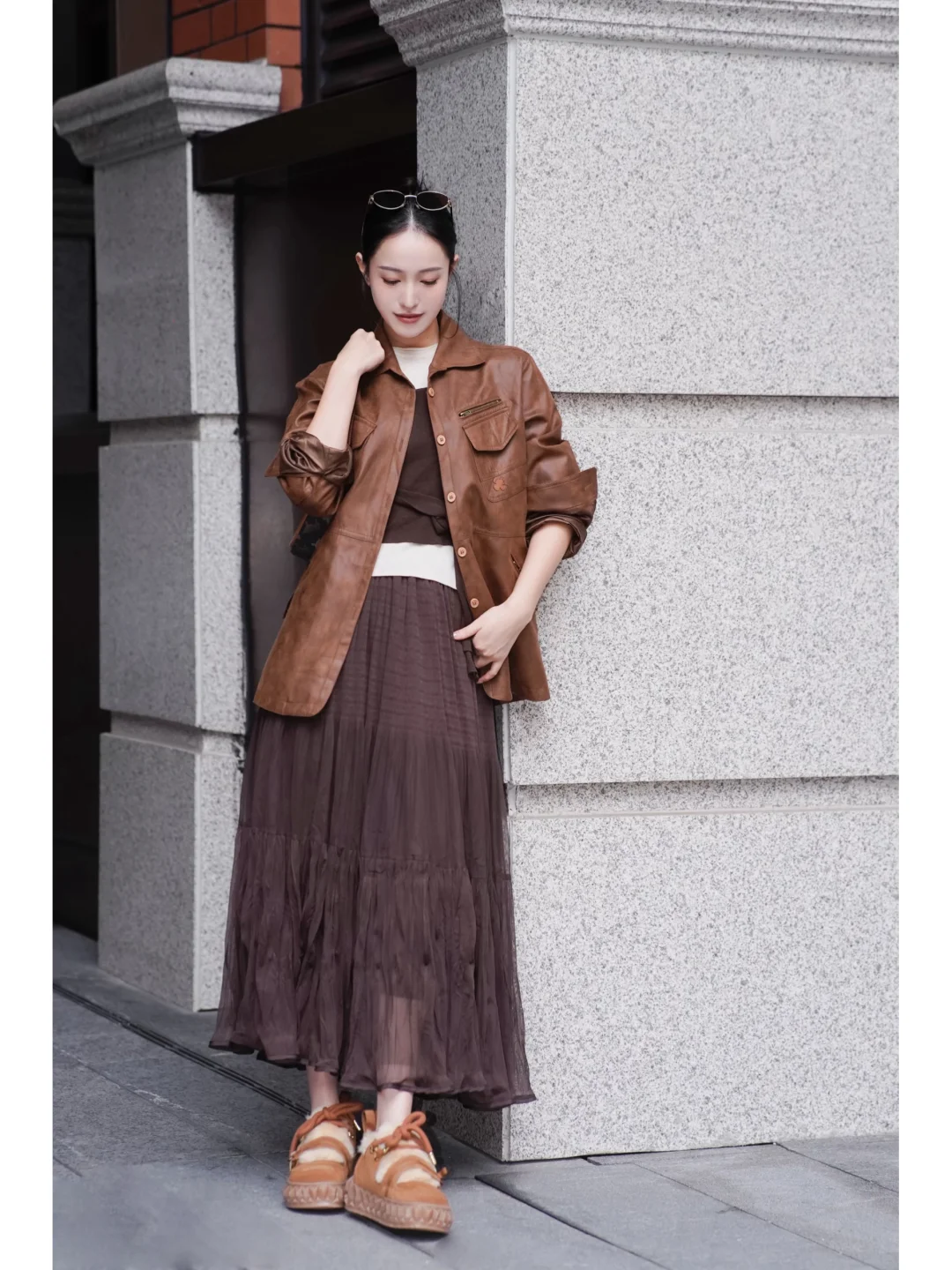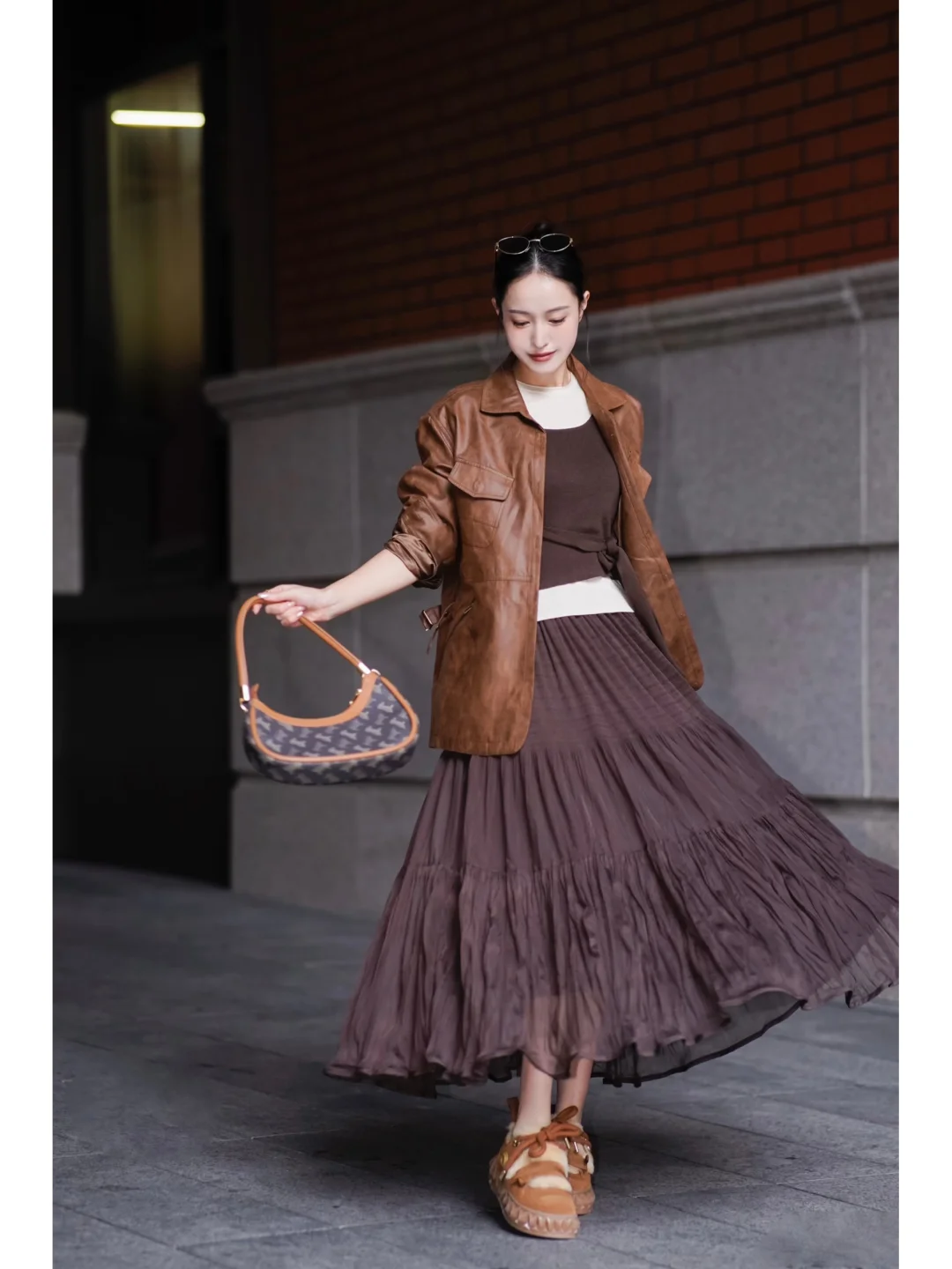 栗子棕色系搭配就很有秋冬的氛围 暖暖的 和这个季节达成一致的默契