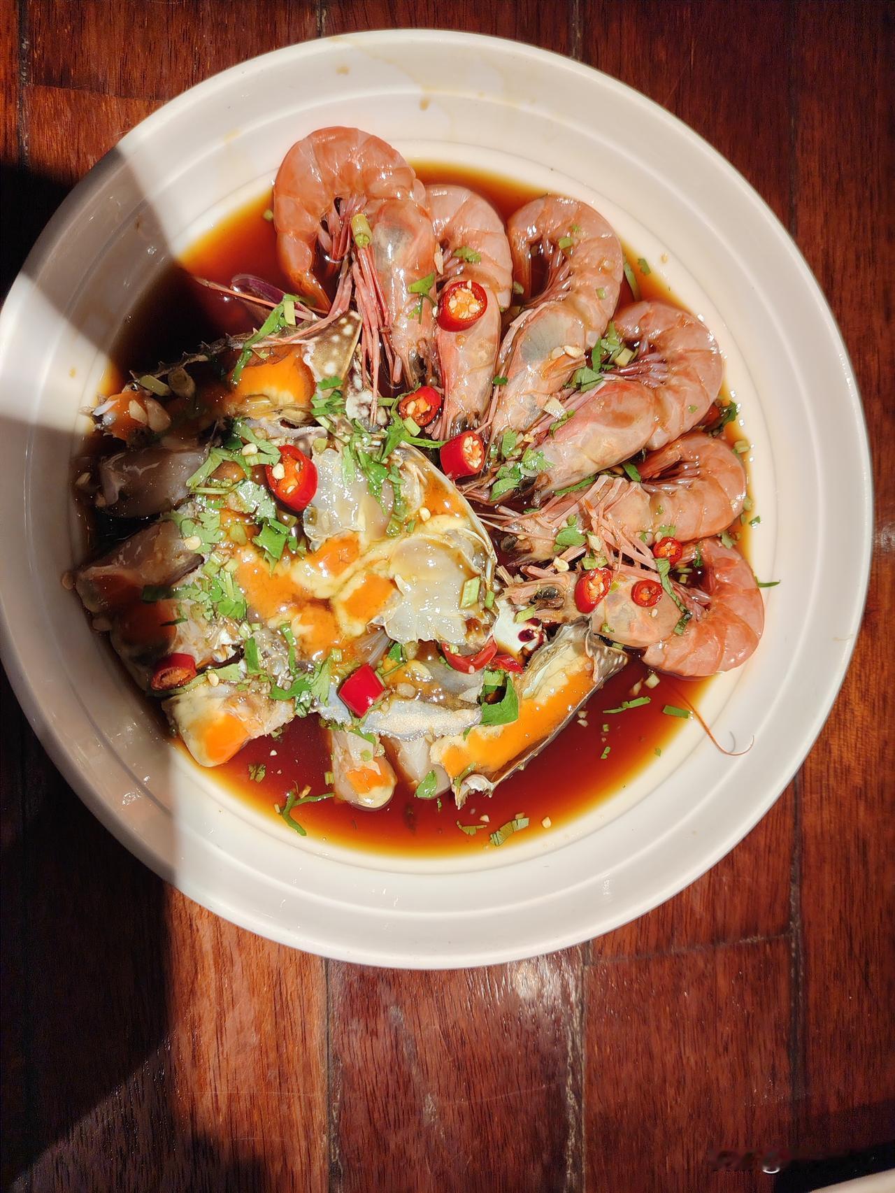 白天在普陀累了一天,今晚来点好吃的。在舟山“妈妈菜”吃饭,点了虾蟹生吃(忘了名字)、蒸沙鳗、红烧舟山带鱼、炒青菜、虾仁蛤蜊捞饭、两小碗米饭。滋味纯厚、带鱼鲜嫩、捞饭香鲜,堪称美味佳肴。美团优惠了5元,不到270,又吃美了。明天中午还想去换几道菜品尝。[大笑][大笑][大笑]