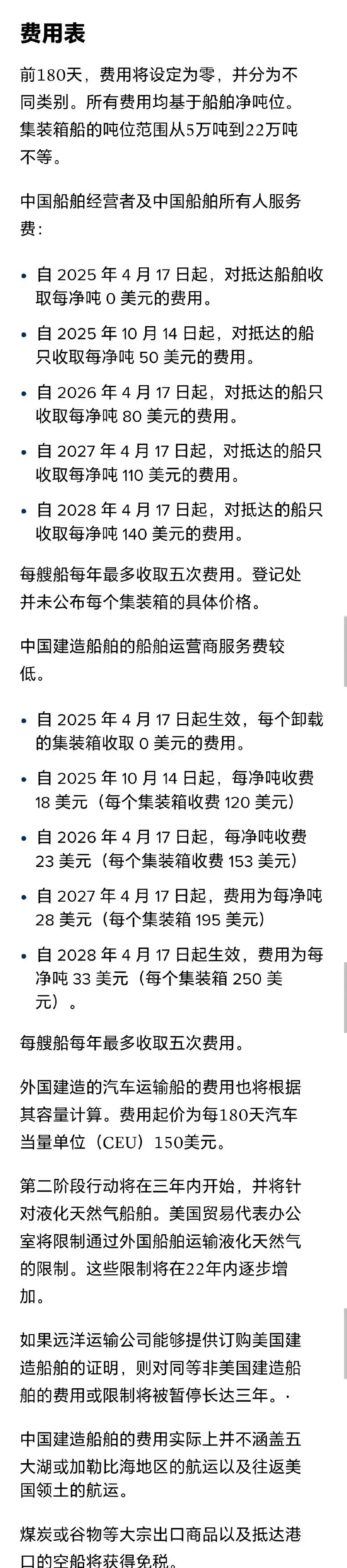 先看这收费有多 “狠”:中国运营的船按每净吨 50 美元收,中国造的船按 18 美元 / 净吨和 120 美元 / 箱 “取高” 收,要是既中国造又中国运营,叠加订单处罚能飙到 350 万美元一次。拿美线主力集装箱船算,单次停靠成本直接涨 304 美元 / TEU,一趟跑多个港口更是翻倍飙升。
