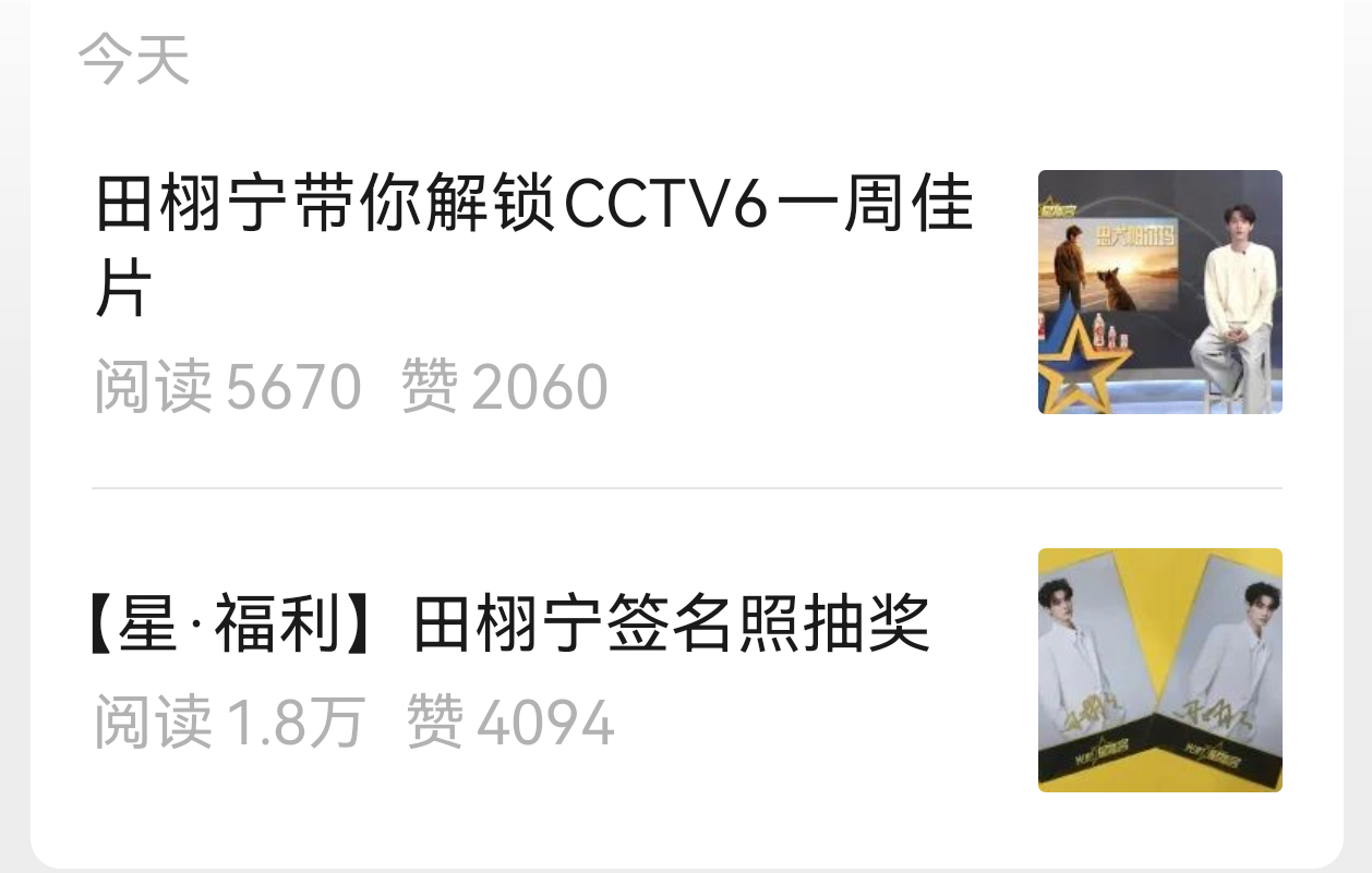 光影星播客公主号发了田栩宁专栏,还设置了签名照抽奖[手指比心]