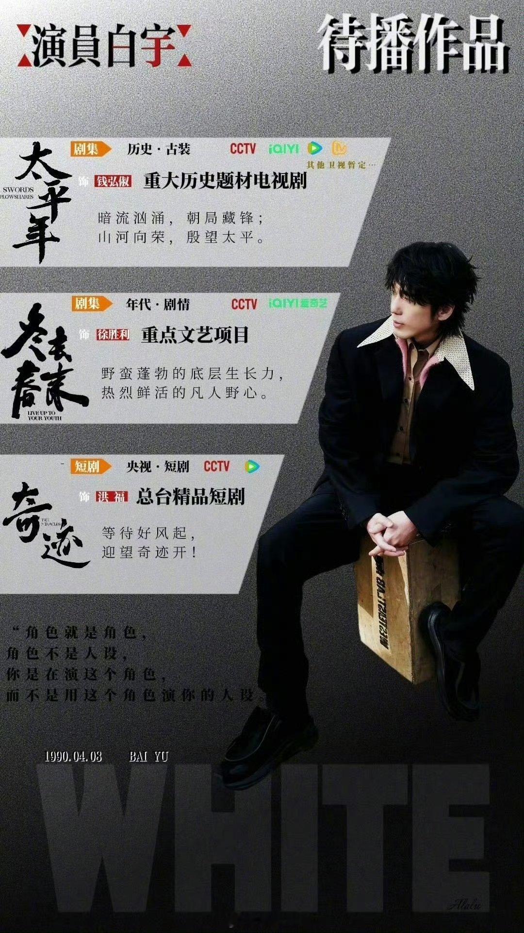 白宇怎么做到又卷又有质量的 内娱实绩派标杆非白宇莫属!今年拍《冬去春来》《奇迹》两部好剧,转头就凭《风起陇西》荀诩拿下春燕奖优秀男主,《乔家的儿女》还斩获优秀电视剧,杀青日喜提双荣誉太爽了~ 待播古装正剧《太平年》片花古味拉满,题材不重复、部部是精品,这质量与效率双在线的状态谁不爱✨