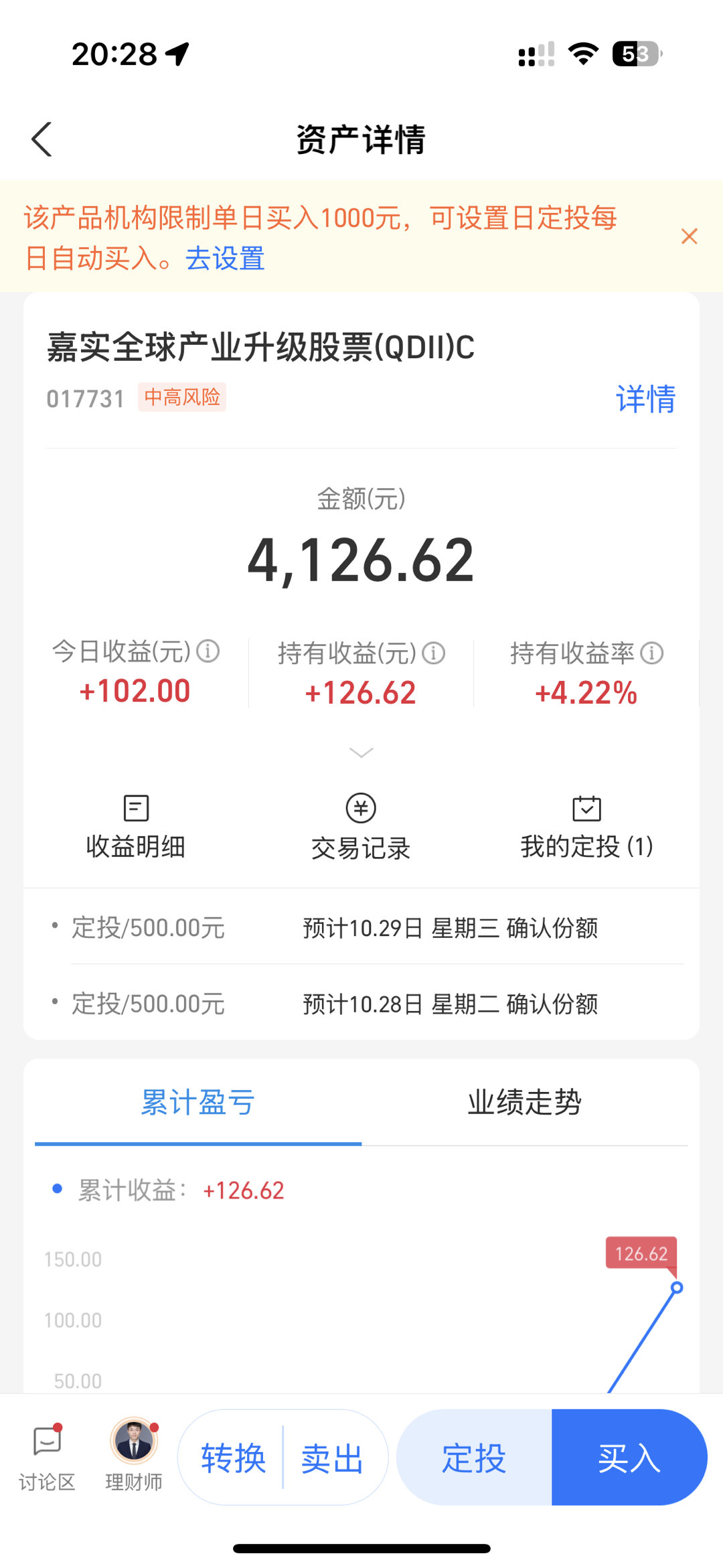 按理说,盈利超过10%,又该减半了,但是限购的厉害,所以不卖了