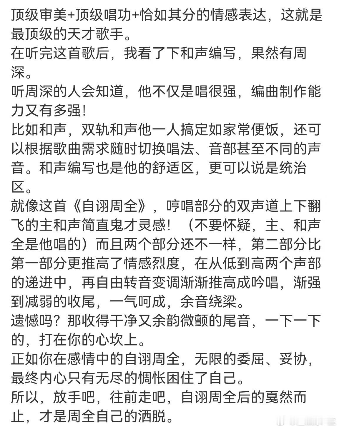 周深无伴奏转音太丝滑谁被周深纯人声《自诩周全》狠狠拿捏了!无伴奏更显声音爆发力,节奏感拉满的转音丝滑到犯规,尾音自带钩子直戳人心,循环N遍纯人声直拍根本停不下来,这就是被老天爷追着喂饭的实力吧~[跪了]