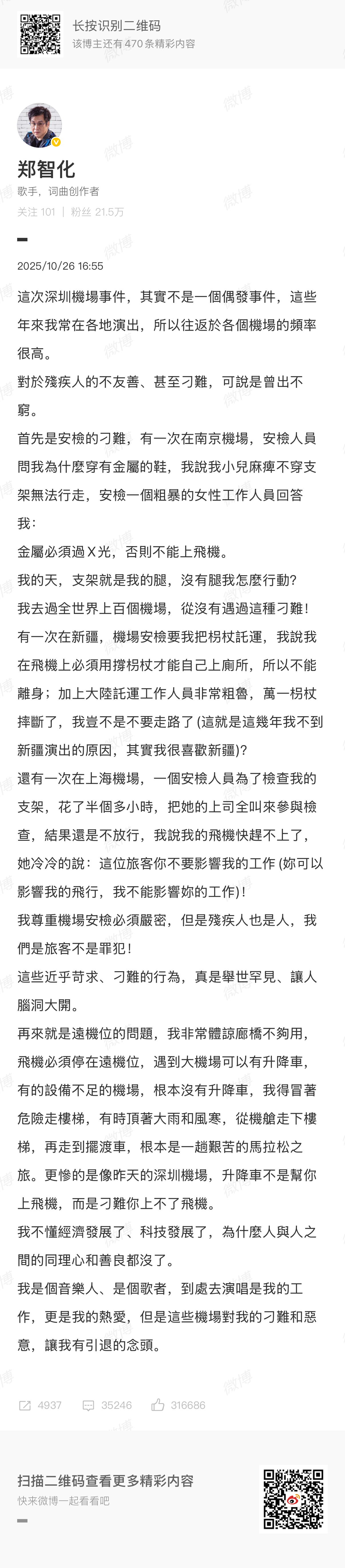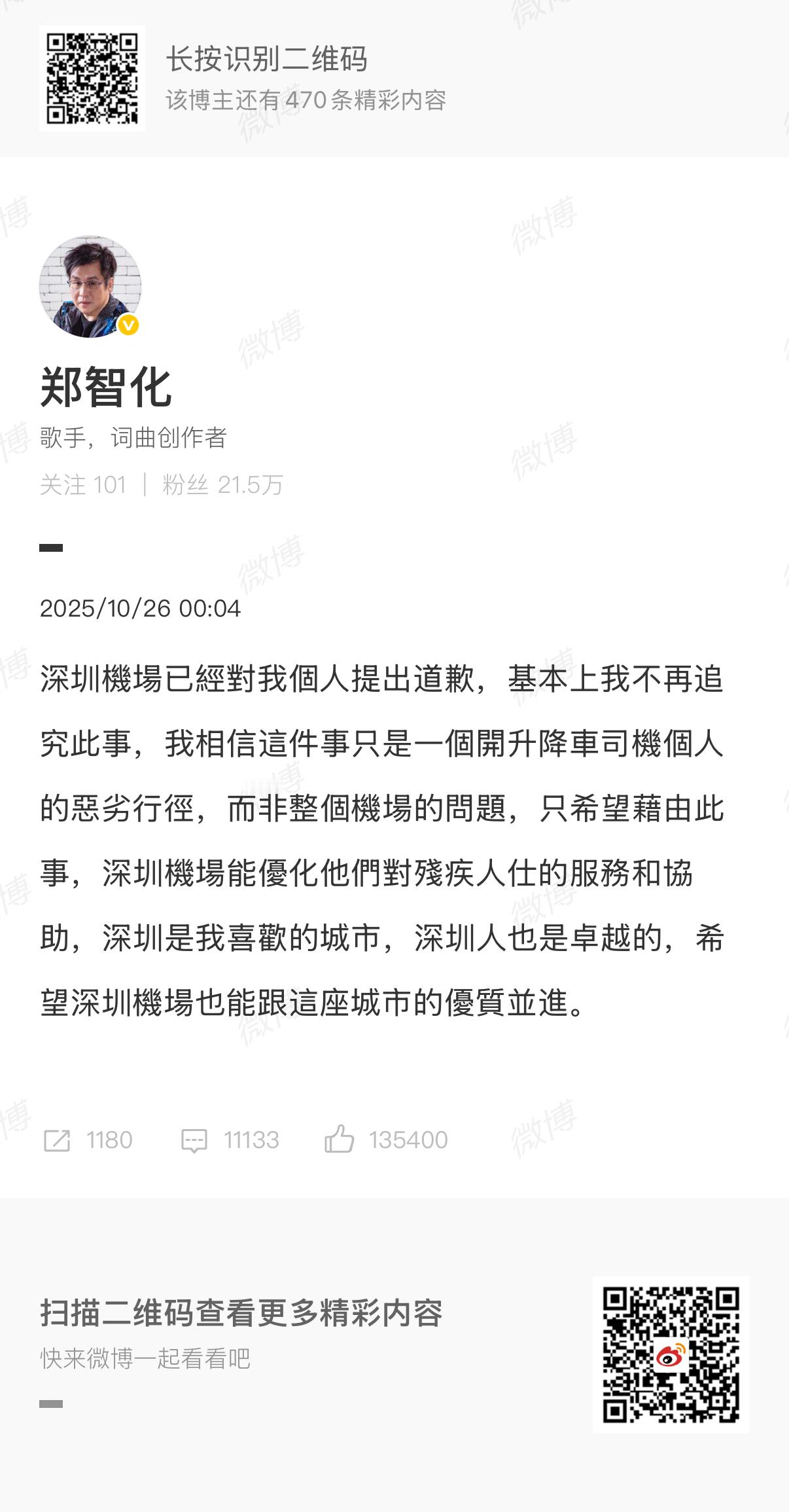 郑智化致歉这么矛盾的吗?前说深圳机场没人性化,后说服务态度非常好[偷笑][偷笑][偷笑]郑智化[超话]