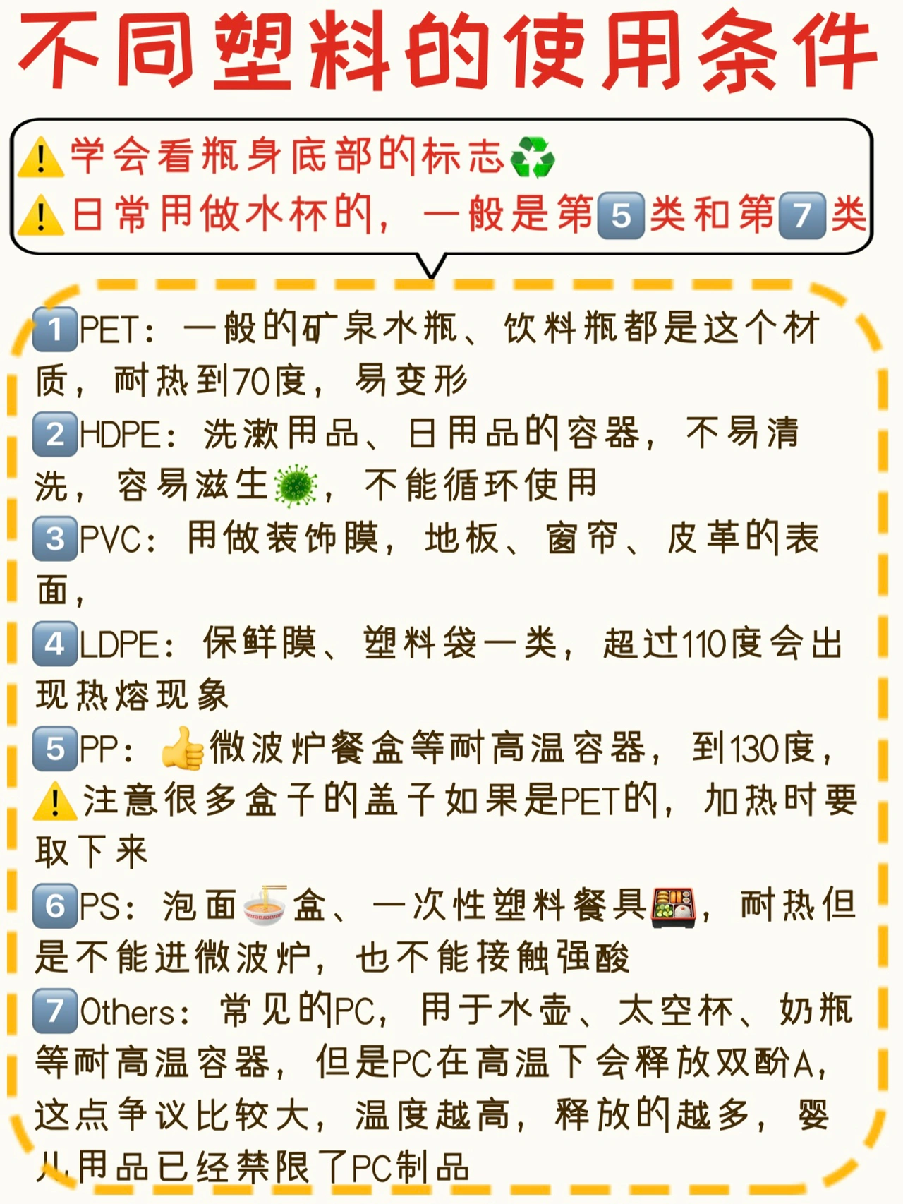 6⃣️PS:泡面🍜盒、一次性塑料餐具🍱,耐热但是不能进微波炉,也不能接触强酸