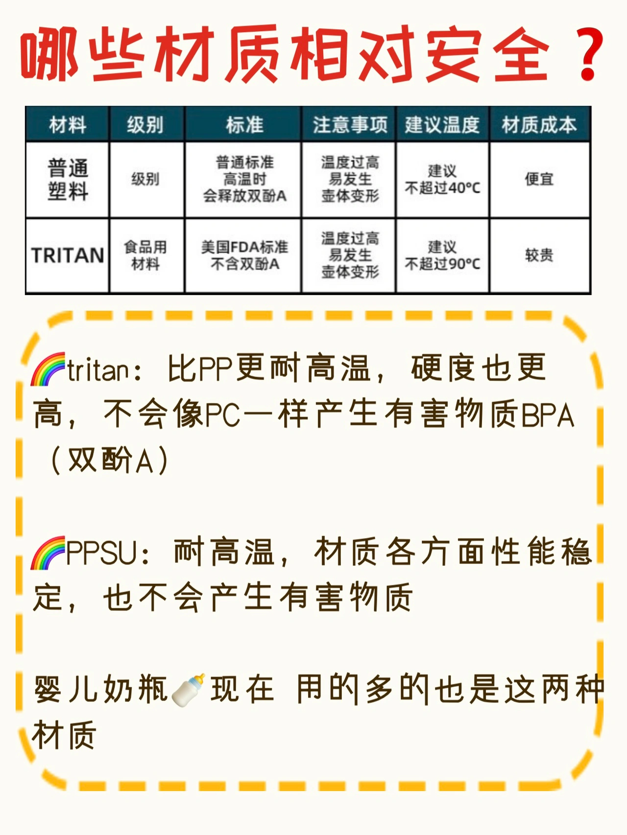 🌈彩虹PPSU:耐高温,材质各方面性能稳定,也不会产生有害物质