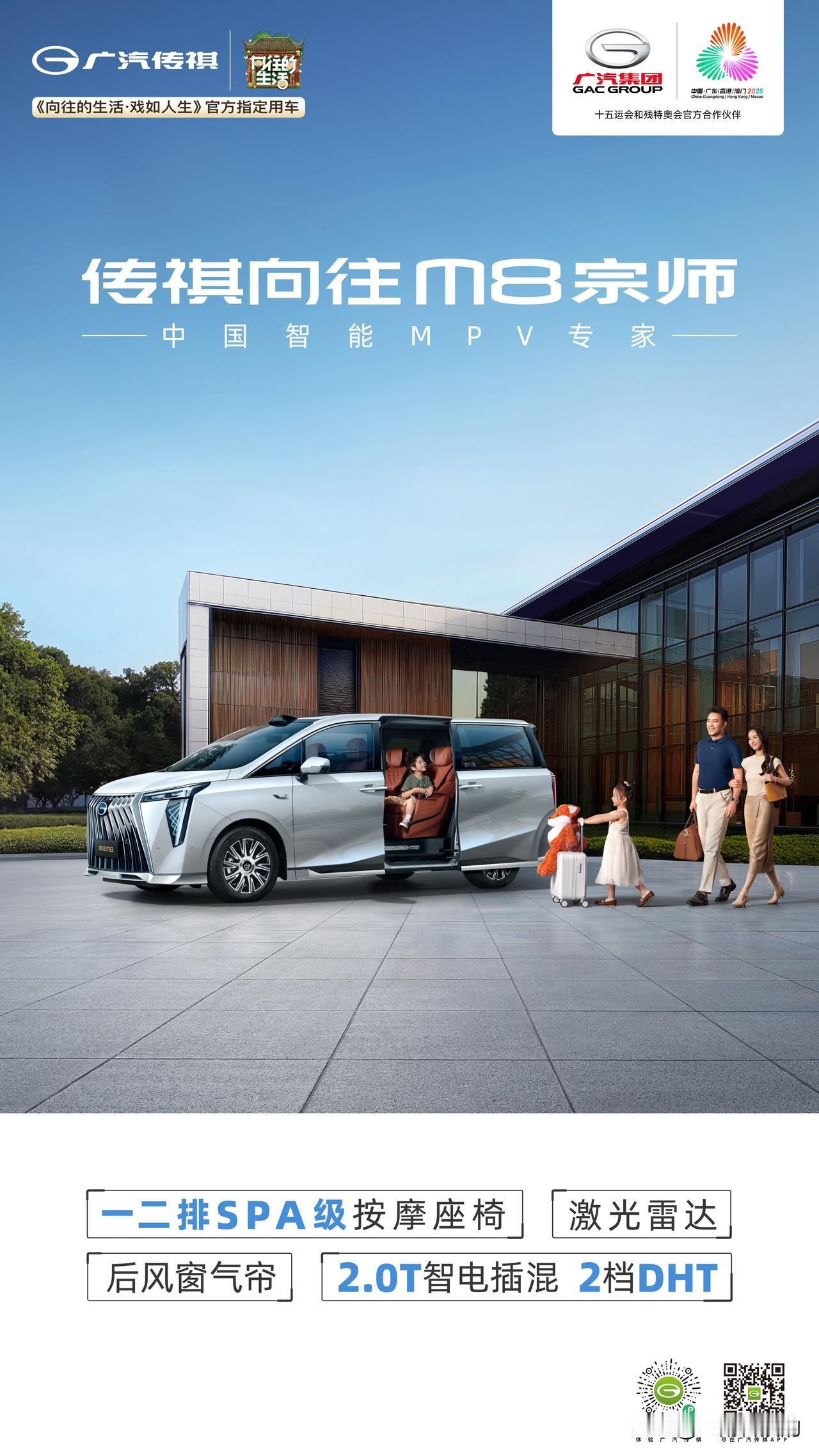 家用MPV卷疯了!广汽传祺向往M8宗师上市,亮点还真是不少。 首先打动我的是它的“数字座舱”。14.6英寸超大悬浮屏+12.3英寸全液晶仪表,导航、音乐、空调一句话搞定。最贴心的是L2+级智能驾驶辅助——高速上自动跟车、弯道自动减速,长途开车再也不用那么累了。 家里老人坐车最怕憋屈,M8宗师的第二排简直是为他们设计的——带通风加热按摩的航空座椅。而且M8宗师配备了全方位安全气囊,高刚性车身结构能有效吸收碰撞能量,安全感也足。 最让我满意的是它的插混系统:平时用电,一公里才几分钱;周末想带家人去远点的地方玩,加油就能走,不用担心充电问题,动力还特别足。加满油充满电,总续航超过1400公里。 难怪现在越来越多人选择MPV了。像M8宗师这样,既考虑了全家出行的舒适安全,又在智能和能耗上这么贴心,确实配得上“智优选”这三个字。