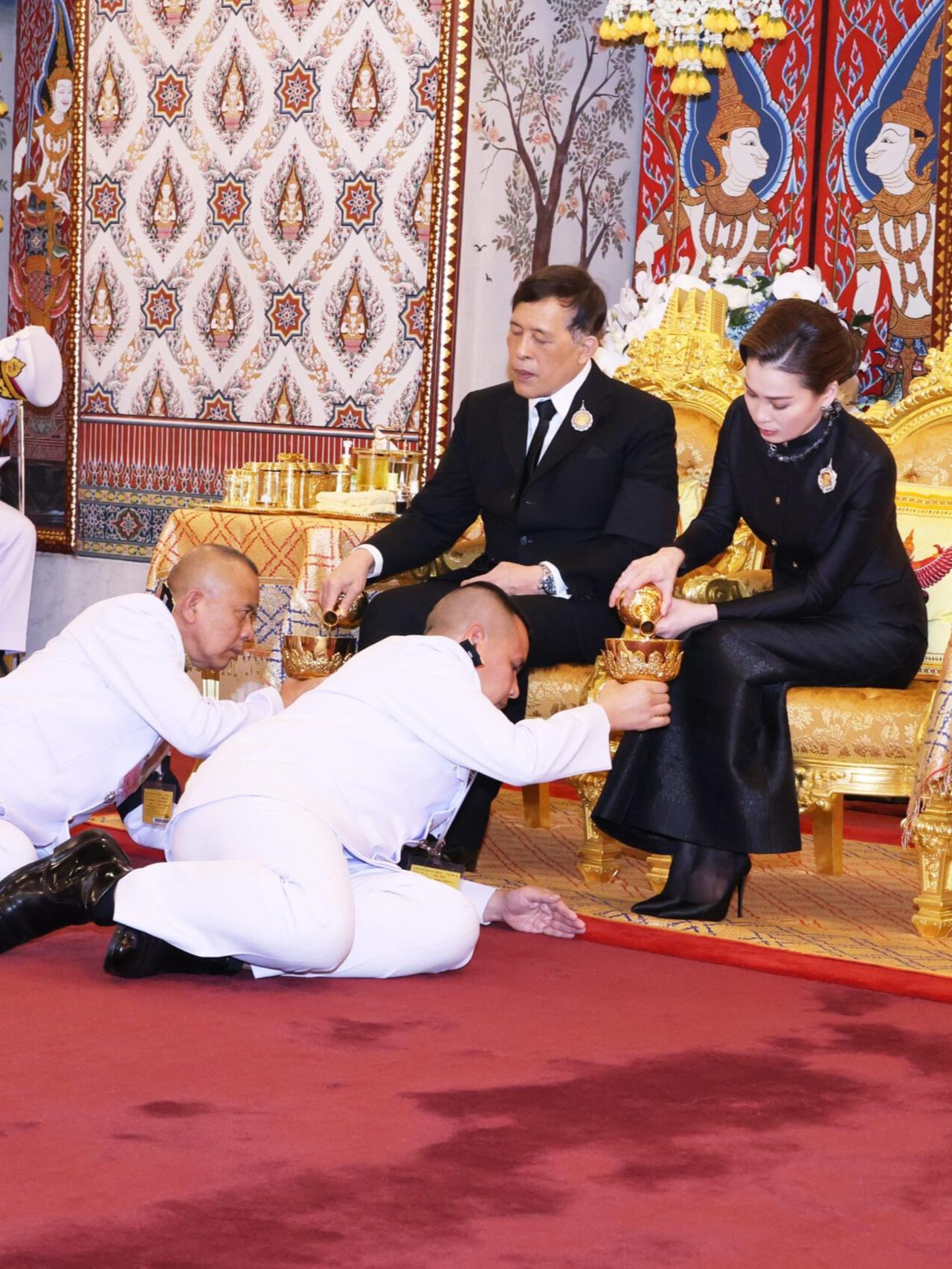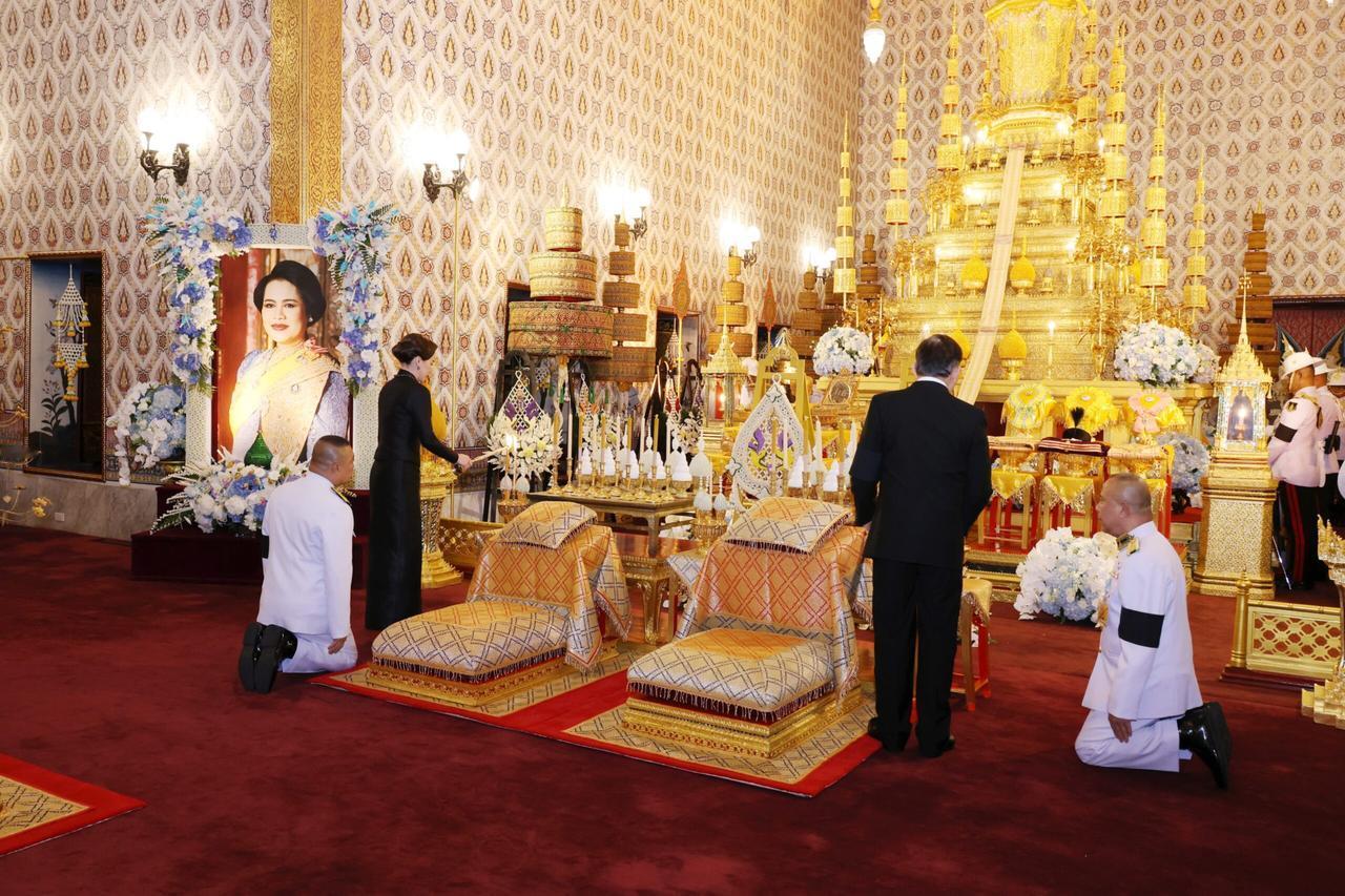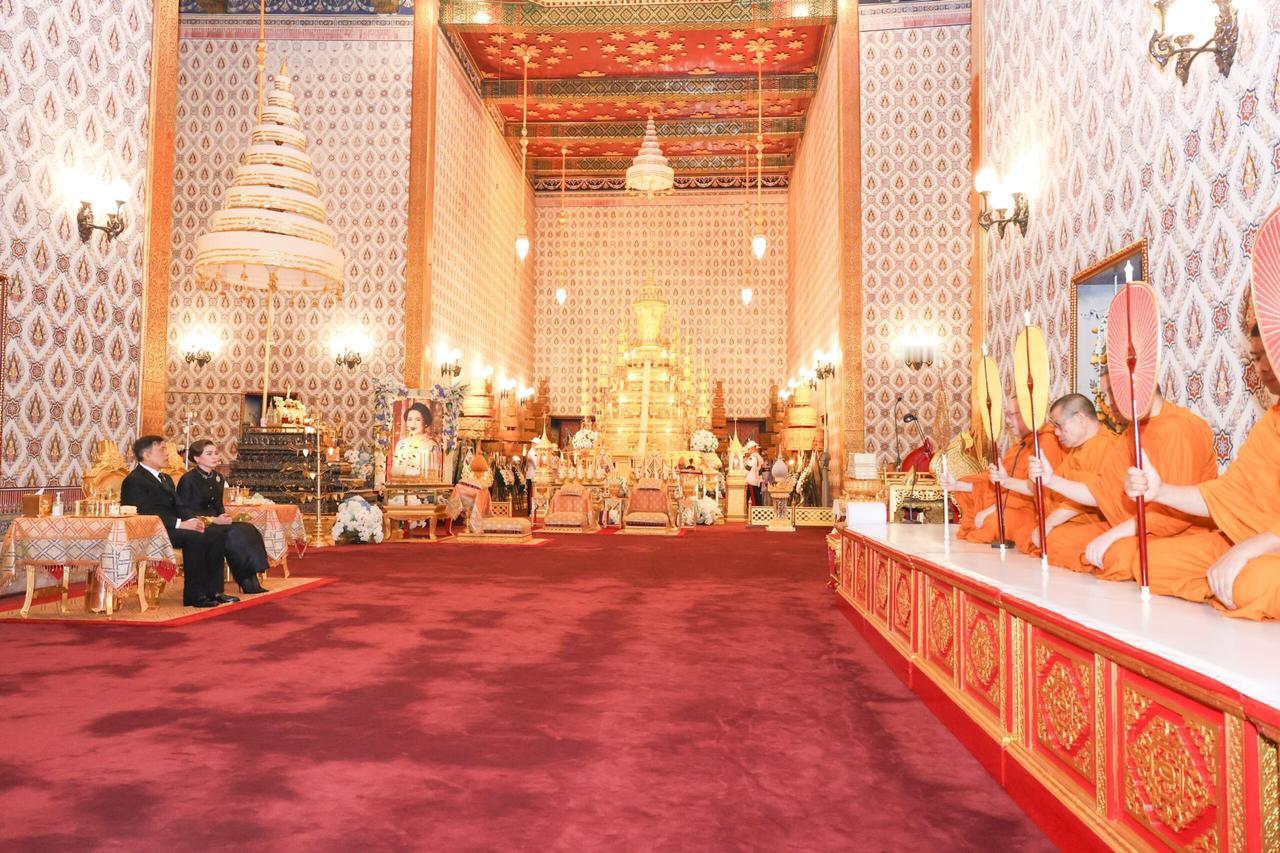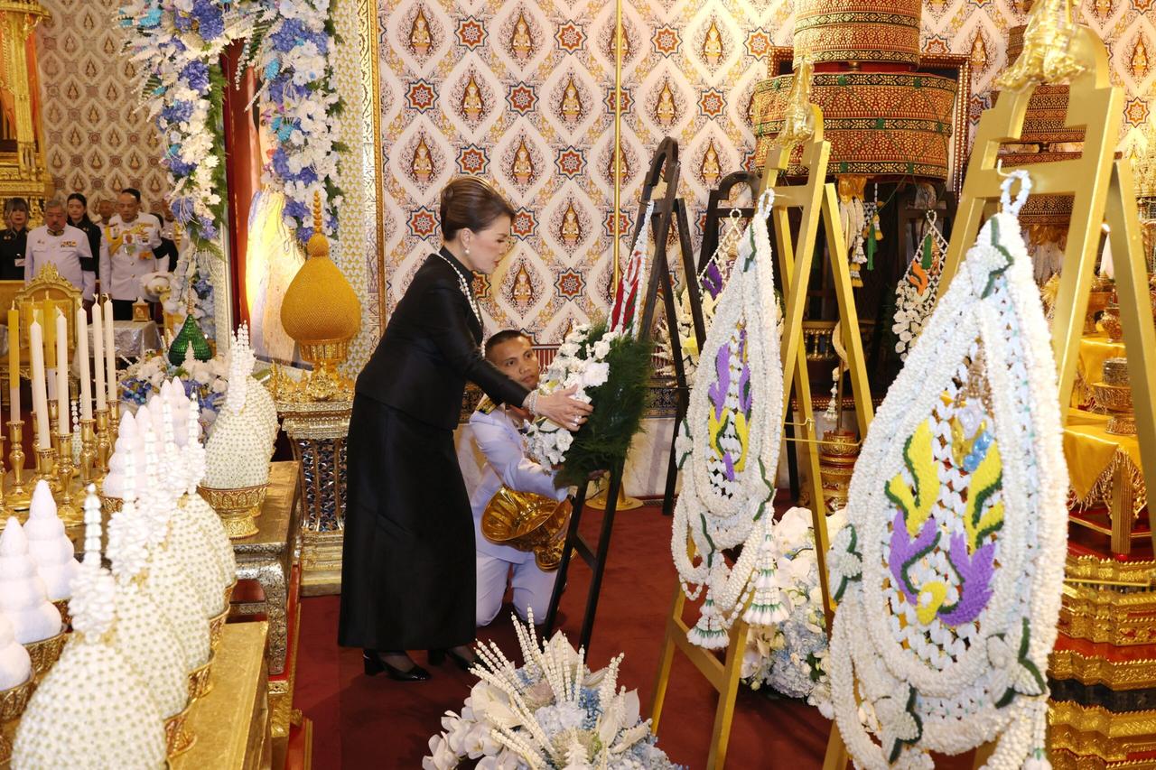 泰王率领王室成员,出席第二天国葬日活动 2025年10月27日晚7:14,国王陛下与王后陛下乘皇家车辆,前往大皇宫杜斯特玛哈普拉萨王座大厅。他们在此为已故诗丽吉王太后主持皇家功德仪式、诵读阿毗达摩。乌汶叻公主、思蕊梵公主及提帮功王子一同随行。