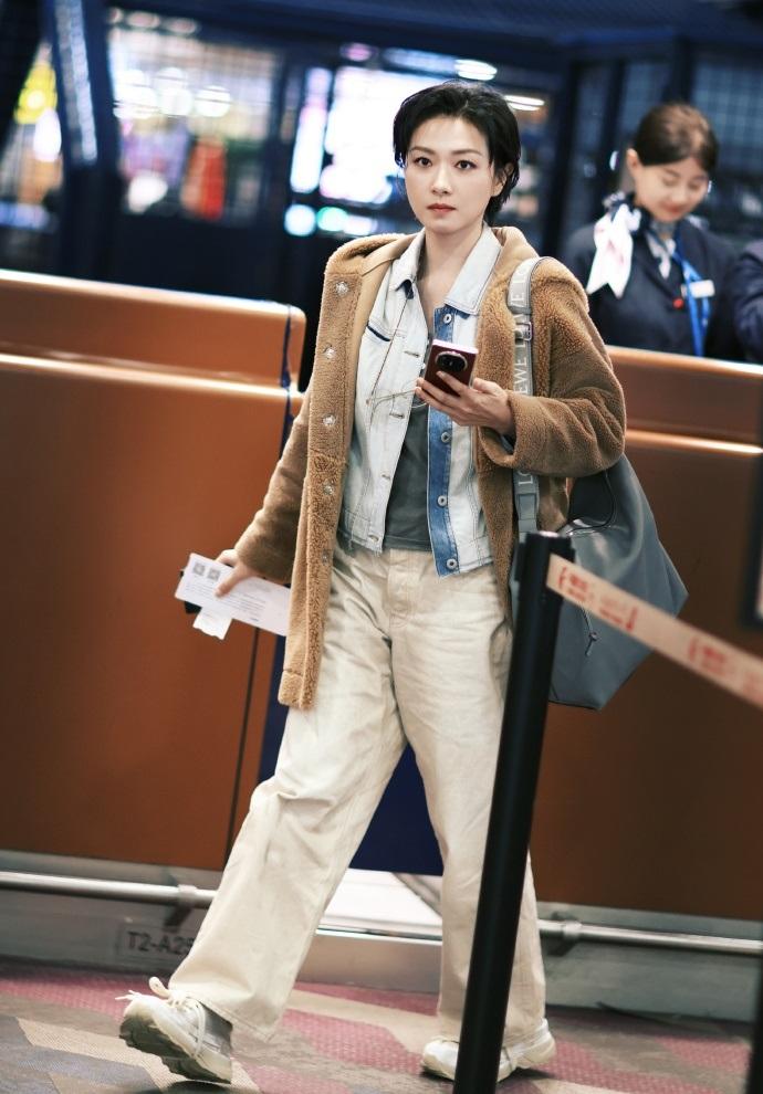 今天万茜现身机场,她这次搭配的很有层次感,看起来也格外的显年轻。 万茜里面穿灰色的打底衫,外面套装做旧风格的牛仔夹克,两件衣服叠穿的效果很不错。 她下身穿白色裤子,外面套装米色的呢子大衣,尽显高贵风情,也很有吸引力。 万茜脚踩白色的运动鞋,有种活力满满的感觉,确实是特别的漂亮。 她留着清新的短发,还画着精致的妆容,看上去好美,也很有大牌明星魅力。