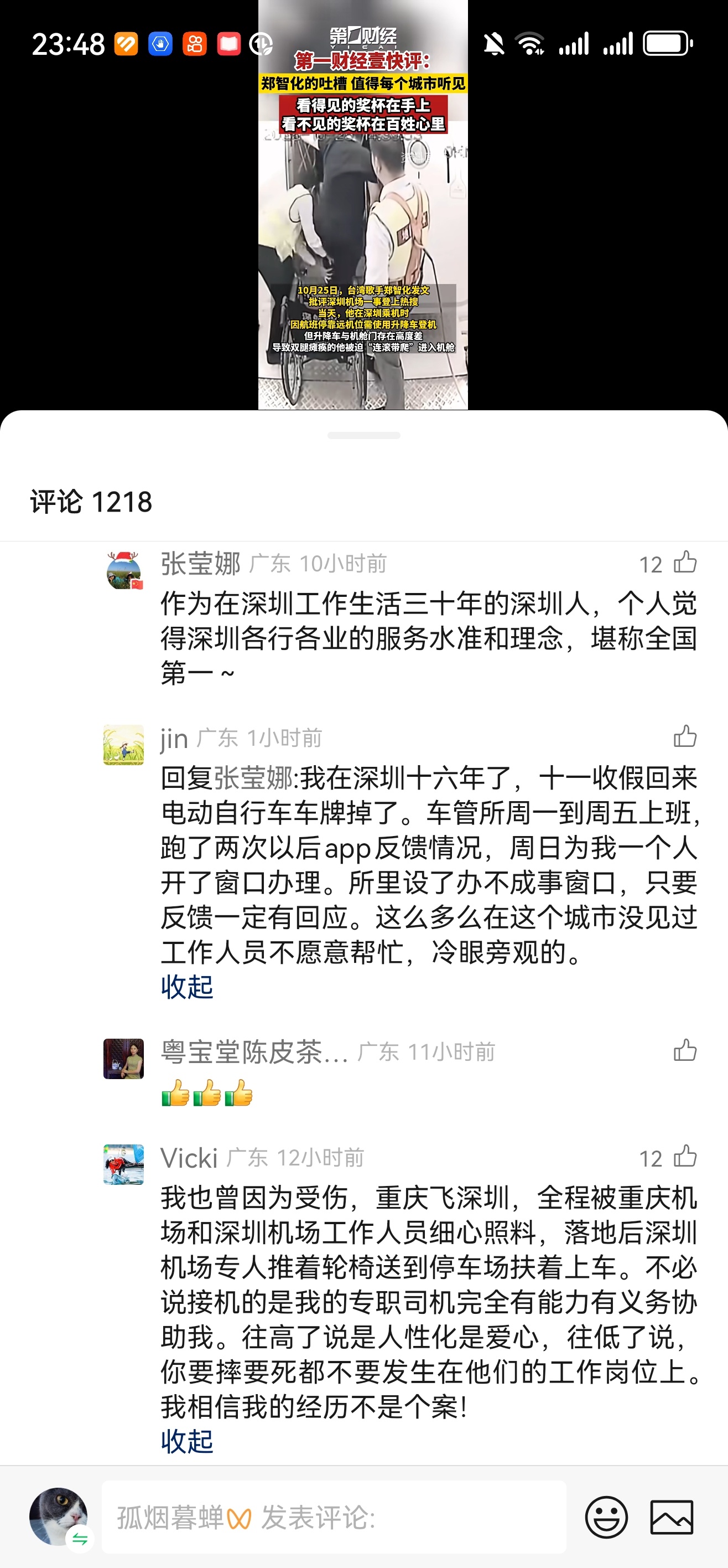 评论翻车,你可以质疑设施不完善,但是你不能质疑深圳的服务,我走遍全国,深圳机场的服务没得说。
