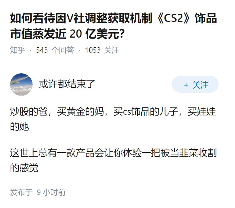 如何看待因V社调整获取机制《CS2》饰品市值蒸发近 20 亿美元?