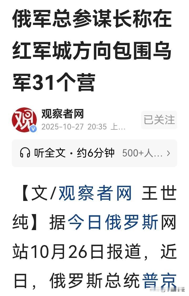 红军城,真的成了俄乌战场的绞肉机啊! 一座多么好的名称城市,现在让俄罗斯和乌克兰打得不可开交,争夺激烈呀。 乌克兰总司令也亲自到了红军城,俄罗斯则宣称围住了乌军31个营,俄军还有劲儿吗?乌军还能创造奇迹吗?这场惨烈的争夺战要持续多久呢?