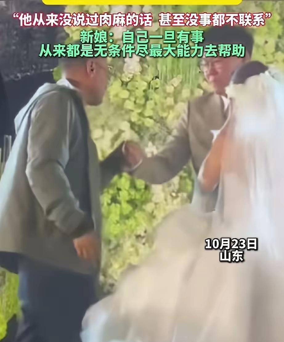 泪目!10月25日报道,山东潍坊一女子出嫁的婚礼现场,她44岁的哥哥代替已故父亲牵着女子走过红毯,而此时一向都不善言辞且有点严肃的哥哥,将女子的手交给新郎时,竟当场破防喜极而泣。 10月23日,山东潍坊,一场婚礼上的眼泪让无数人红了眼眶。 不是新人相拥的热泪,而是新娘44岁哥哥的失声痛哭。 当婚礼乐曲轻响,他牵着身着婚纱的妹妹踏上红毯,背影挺得笔直。 可在将妹妹的手交到新郎手里的瞬间,这个平日里板着脸、话都没几句的男人,肩膀突然剧烈颤抖。 眼泪砸在深色礼服上,顺着指缝往下淌,连抹泪的动作都带着抑制不住的哽咽。 新娘李女士后来哽咽着说,父亲去世那年她才十几岁,家里的天一下就塌了,是当时刚满30岁的哥哥接下了所有担子。 那些年,哥哥跑工地做苦力,手掌磨出厚茧只为凑齐她的学费;母亲的降压药从不会断供,都是哥哥算着日子定期买回来。 就连高考那晚上,她在考场里答题,哥哥就在外面守着,手里还攥着给她准备的温水和面包。 婚礼前一晚,哥哥就站在她房门口,沉默半天只说“以后受委屈了就回家”,说完转身就走,连让她道谢的机会都没有。 可婚礼当天,这个从不外露情绪的男人,却在所有亲友面前卸下了伪装。 交接时,他不仅把妹妹的手放进新郎掌心,自己的另一只手还紧紧握着新郎的手,三个人相拥的瞬间,他的眼泪打湿了两个人的衣袖。 等到转身离场,他还一步三回头地望着妹妹,眼里的不舍藏都藏不住。 哥哥不会说甜言蜜语,却把“守护”刻进了日常;他们看似严肃坚强,却会在亲人需要的瞬间暴露柔软。 就像潍坊这位哥哥,14年的付出从不说苦,却在妹妹出嫁这天,把积攒的牵挂、欣慰与不舍都化作了眼泪。 在这个总说“人情淡薄”的快节奏社会里,这样的亲情就像一束光,照见了最本真的温暖。 潍坊婚礼上的眼泪早已擦干,但哥哥的担当留在了妹妹的心里,也留在了无数人的记忆里。 我们每个人的心里,或许都有这样一个默默守护的亲人。 他们是家里的顶梁柱,是委屈时的避风港,是我们看不见却永远系在心上的风筝线,无论飞多远,总有一份牵挂在牵引。 而这份用心守护、勇敢承担的亲情,无关轰轰烈烈,却在柴米油盐的日常里,在关键时刻的眼泪里,成为了人生路上最动人、也最珍贵的风景。