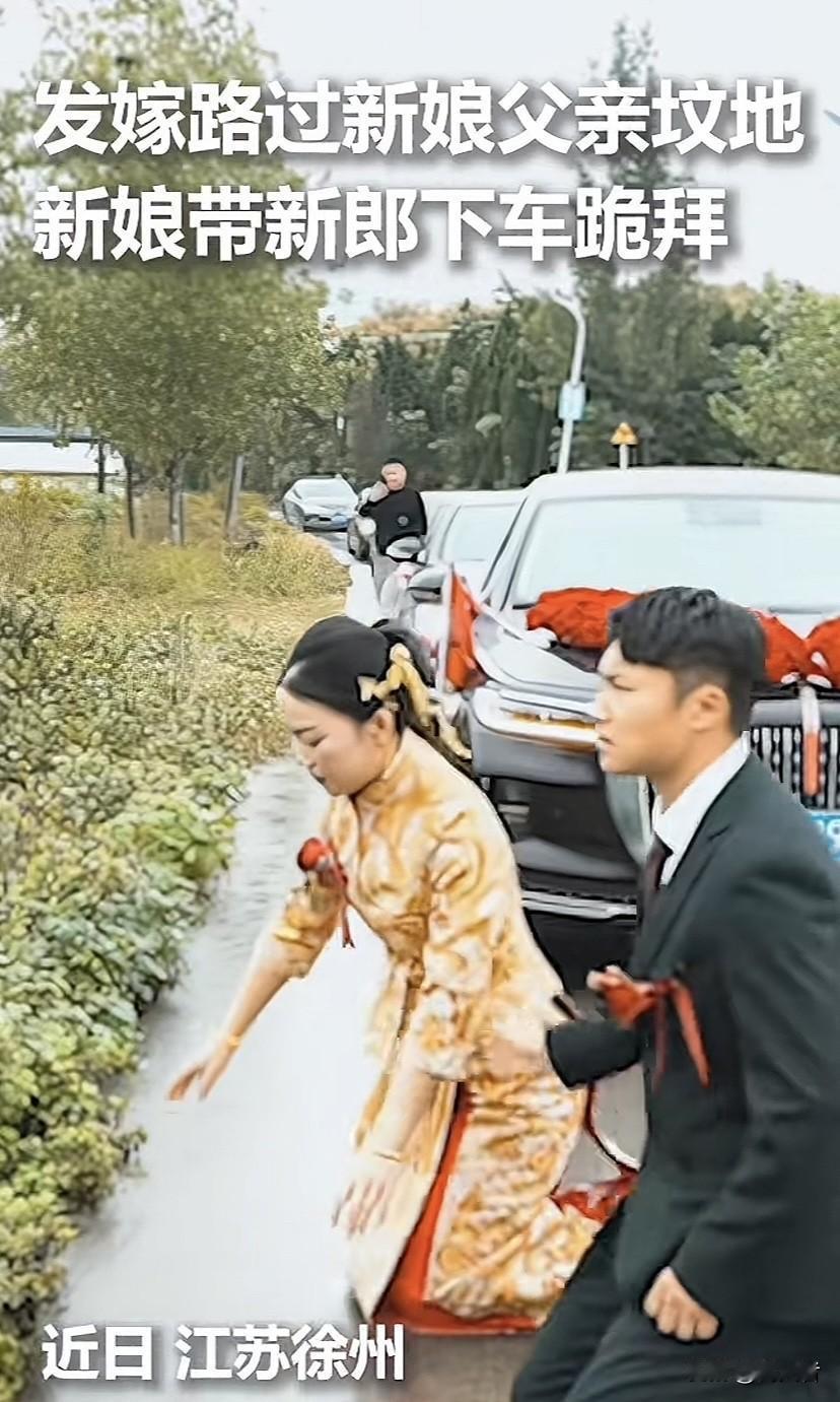 看到新娘出嫁路过父亲坟地,和新郎下车跪拜,那一声“爸爸我走了”,真的让人破防。想想新娘此刻的心情,该承载着多少对父亲的思念啊。在人生这么重要的时刻,父亲却不能亲眼见证她嫁人,而新郎能陪着新娘一起跪拜,这一幕也让我们明白,亲情永远是心底最柔软的地方,即便阴阳两隔,那份爱也不会消散,只愿这位新娘未来的日子能幸福美满。