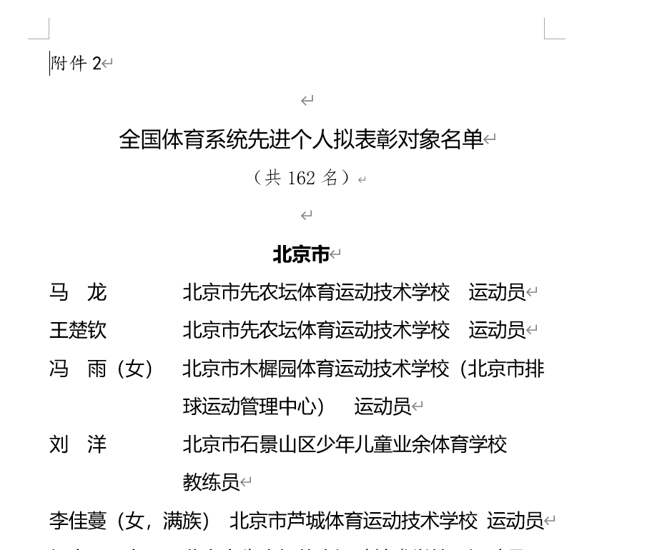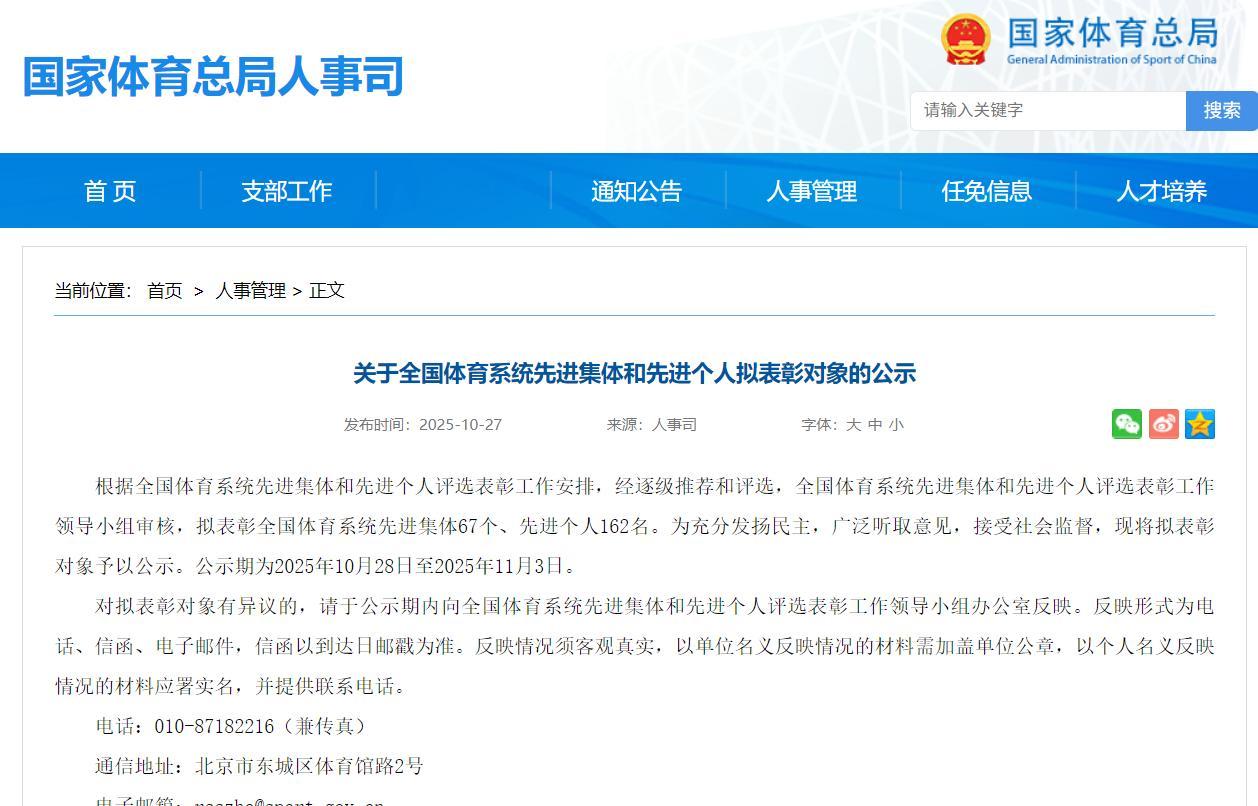 关于全国体育系统先进集体和先进个人拟表彰对象的公示
