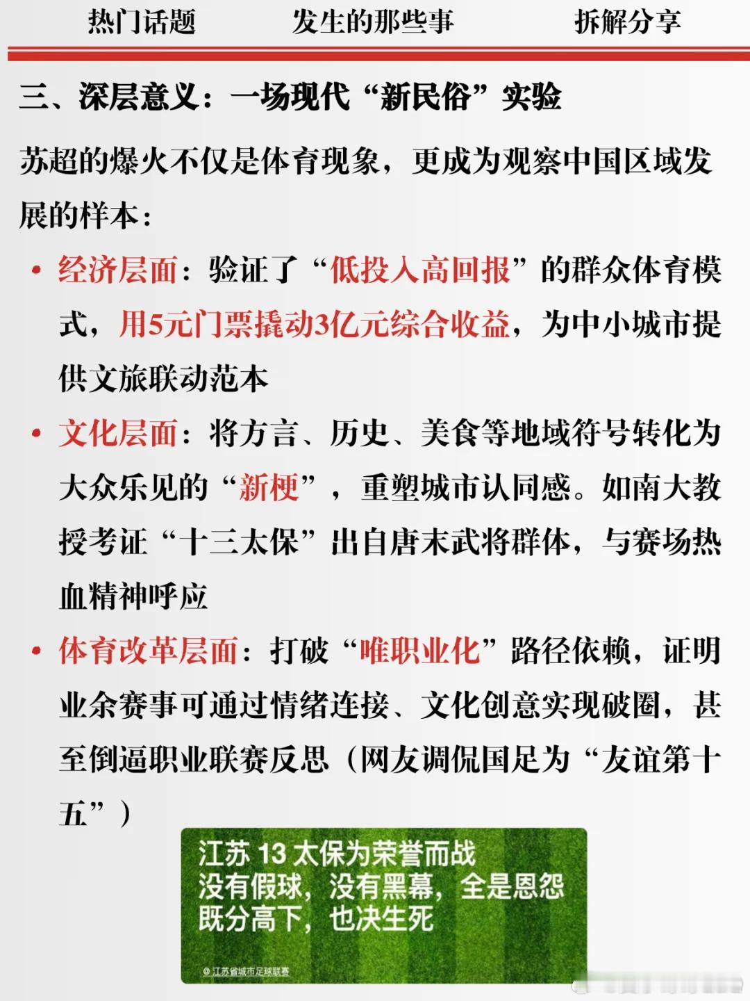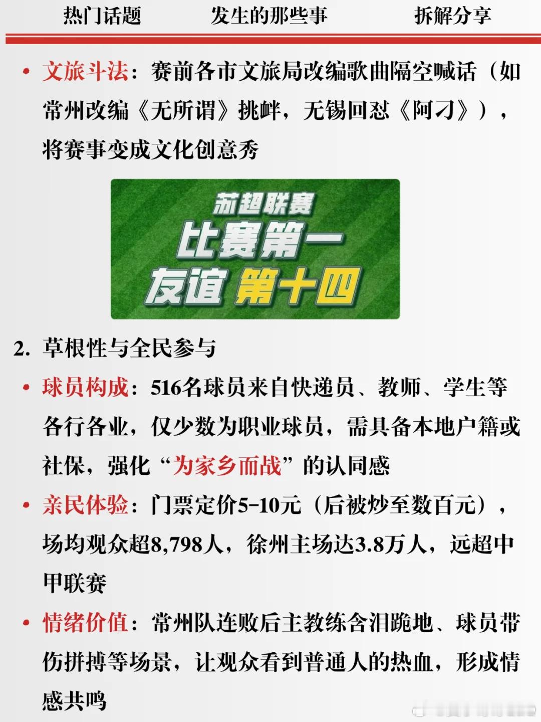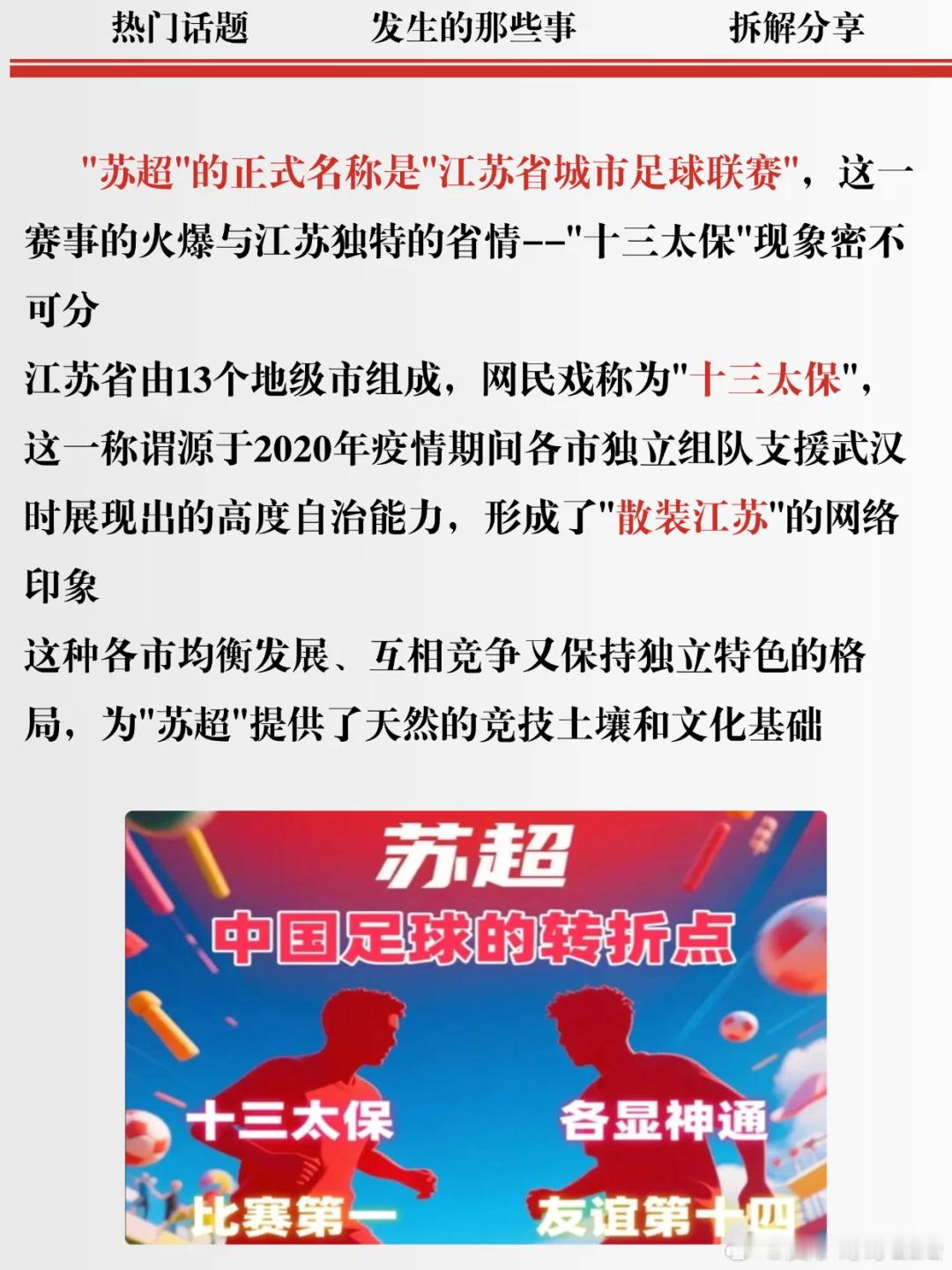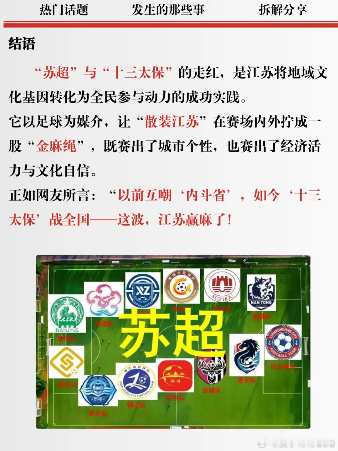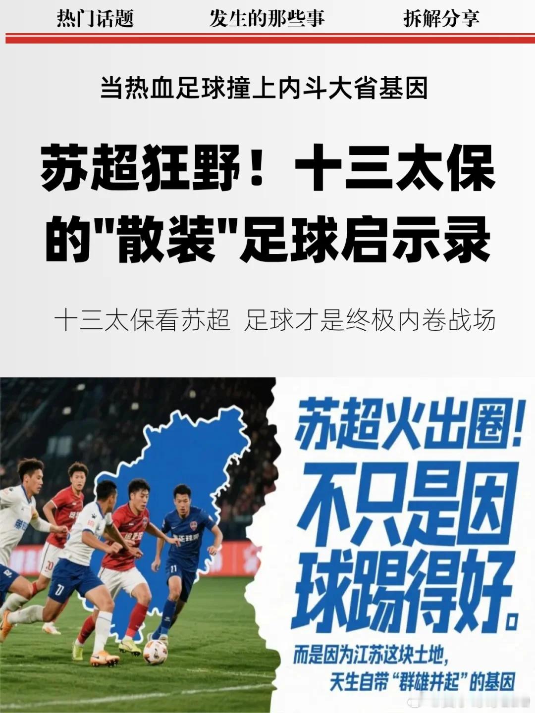江苏省城市足球联赛(苏超)火爆全国,观众人数屡创新高,带动“票根经济”和赞助商热情。普通从业者参与,激发为家乡而战的情感共鸣,回归足球快乐本质。未来或扩展假期赛程,鼓励青少年参与,推动足球普及。