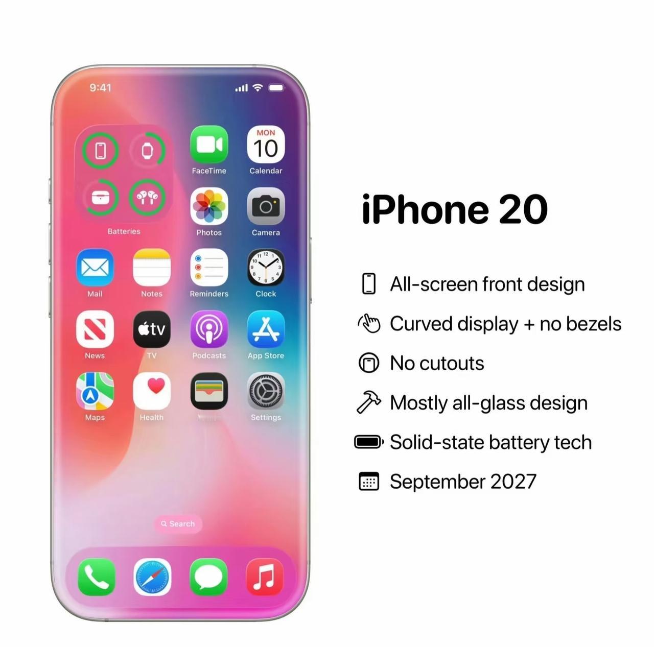 20周年苹果牙膏要挤爆了?[灵光一闪]据爆料,苹果计划在2027年,即iPhone问世20周年之际,推出里程碑机型iPhone 20(或将跳过iPhone 19直接命名)。这款被喻为“史上最激进”的iPhone,预计将迎来多项重大升级: · 外观设计:可能采用无边框曲面屏,向“整块玻璃”的终极形态迈进。 · 屏下技术:力争实现屏下Face ID,前置摄像头也可能隐藏于屏下或改为微小开孔。 · 屏幕素质:搭载更亮、更薄的COE OLED屏,提升亮度并降低功耗。 · 影像系统:或配备定制HDR传感器与可变光圈镜头,增强动态范围。 · 核心芯片:有望采用第二代2纳米制程的A21芯片,并搭载性能目标超越高通的自研调制解调器,以提升能效与续航。 这款20周年纪念机型被视为苹果技术集中突破的力作,备受市场期待。怎么样喜欢嘛?到时候考虑入手吗?