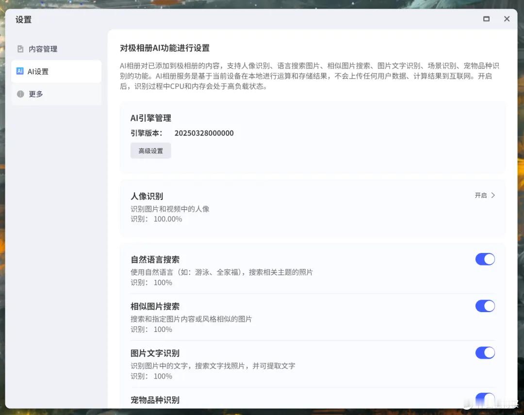 NAS最基础的功能就是给储存扩容,就拿极空间Z4Pro+来说,配有4个SATA盘位加上2条M.2插槽,最多能扩展到136TB,对大多数人来说,这样的容量完全够用。实际用起来也很省心,照片、视频能自动备份到NAS里,系统会自动整理照片,按人脸、场景等进行分类,查找起来也很方便,搜关键词就能快速找到,同时实况照片也能完整保存和播放,这一点对iPhone用户很友好。