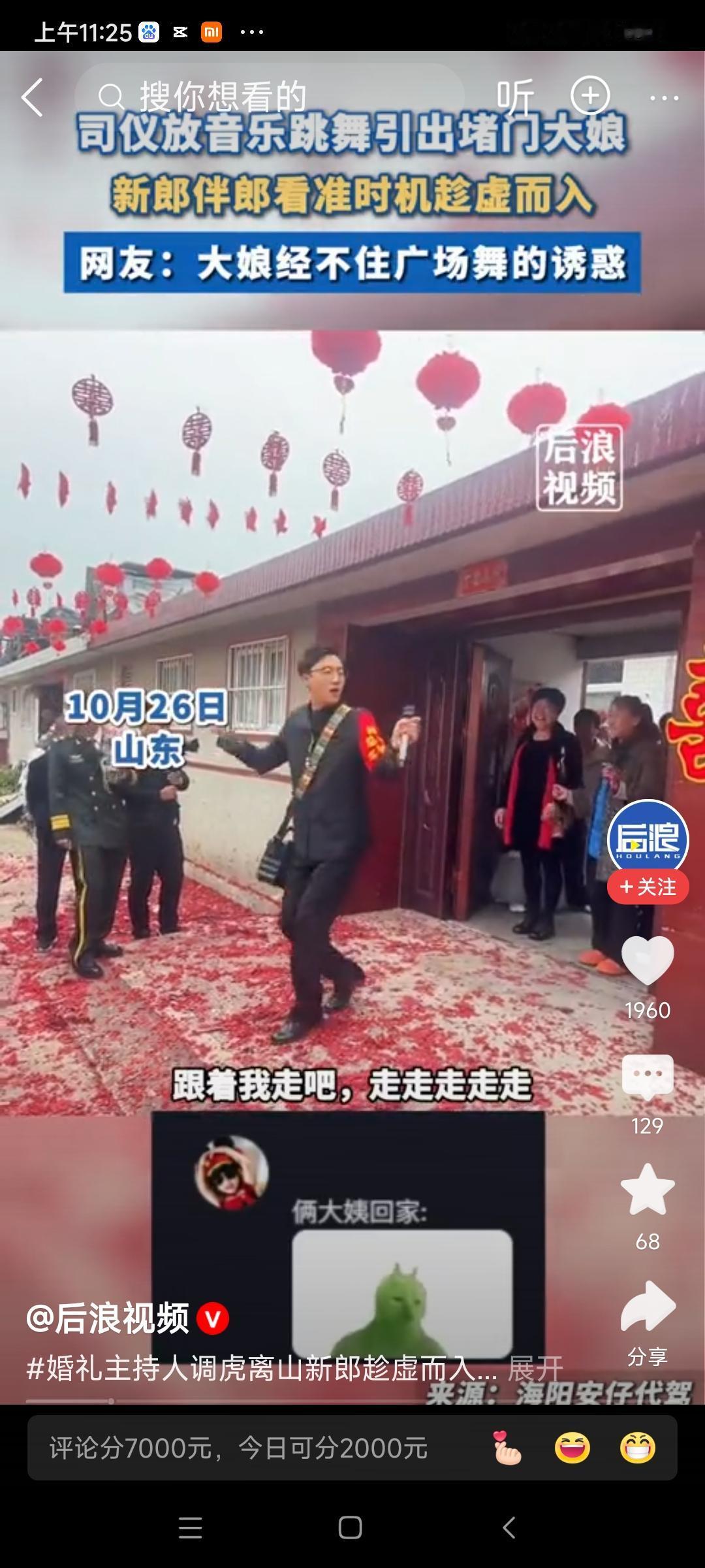 巧计调开堵门人, 新郎悄入见良辰。 主持妙策添欢趣, 一场婚礼满情真。
