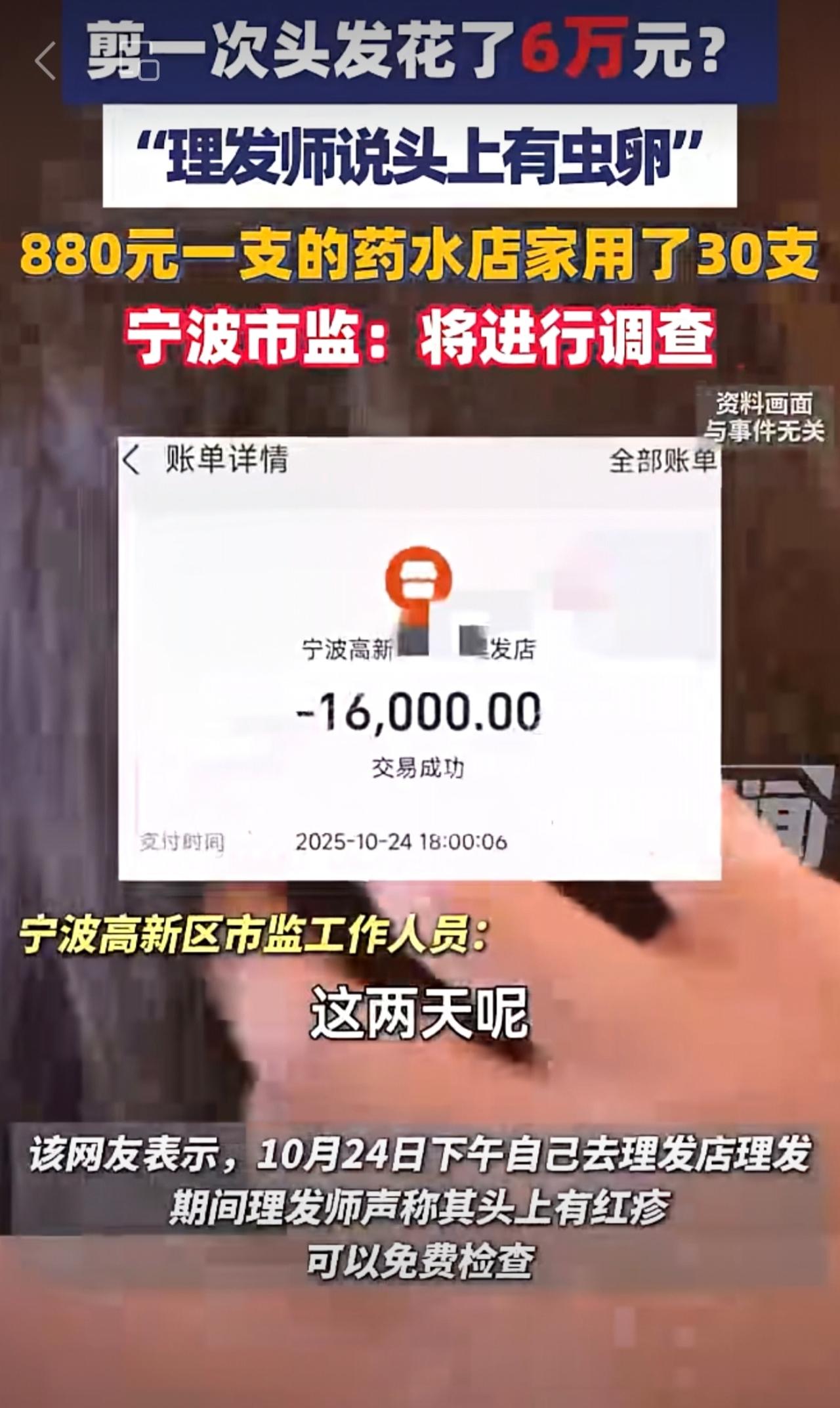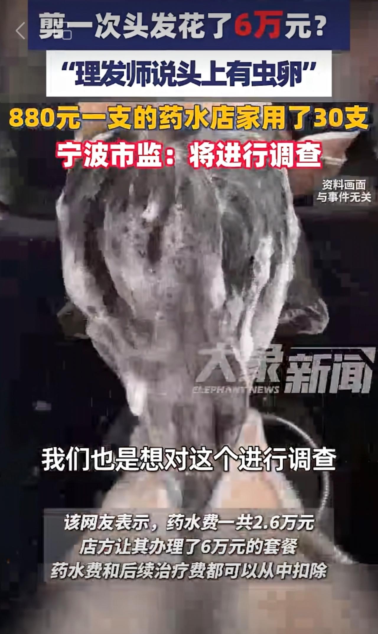 剪一次头发花6万元?“理发师说头上有虫卵,880元一支的药水用了30支”(来源:大象新闻)