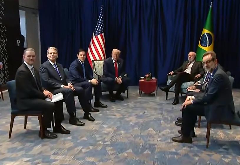 郑重道个歉!昨天发的两个作品中,误将左图中站在特朗普面前的人错认为巴西总统卢拉。造成这种错误有两个原因,一是这是取自于网络的图片,别人说是卢拉所以就信了,二是卢拉与特朗普也在马来西亚会面(右图)了,是基本相同的场景。其实只要细心点就能发现,两张图中美方陪同人员的座次是有不同的,另外就是卢拉并不戴眼镜!特别致歉,非常不好意思。最后请教一下,左图中站着的人,如果不是卢拉,那会是谁呢?